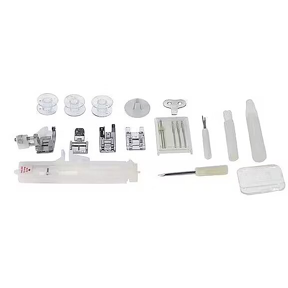 Accessories included - Accessory Drawer 90 Needle (3 pcs) Ripper with Brush Oiler Screwdriver Screwdriver Bobbins (3 pcs) Feed Dog Disengagement Plate Spool Pin Spool Pin Stop Dust Cover Pressers Universal For buttonhole sewing For zipper sewing For overcasting For satin stitching For blind stitching