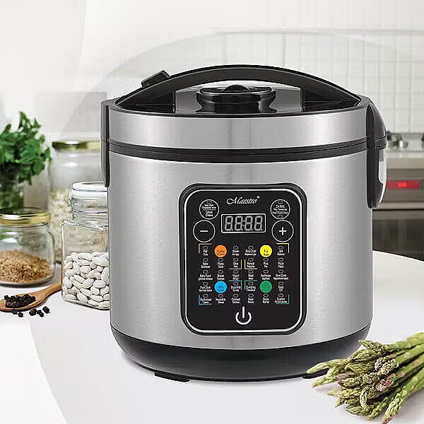 Description - Multicooker Maestro MR-794 to wszechstronne urządzenie kuchenne, które umożliwia przygotowanie różnorodnych potraw dzięki misie o pojemności 5 litrów oraz mocy 900 W. Obudowa wykonana z trwałej stali nierdzewnej i tworzywa sztucznego zapewnia wytrzymałość oraz nowoczesny wygląd. Multicooker oferuje aż 30 programy do gotowania, smażenia i pieczenia, co sprawia, że jest idealnym rozwiązaniem do codziennych kulinarnych wyzwań.