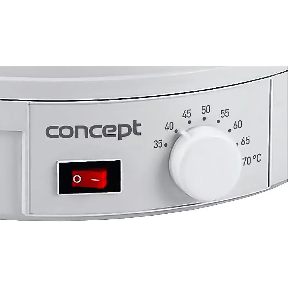 Functions - Drying of fruit, vegetables, mushrooms, herbs, flowers, meat, fish and pasta Continuously variable drying temperature from 35 to 70 °C Fan for even drying
