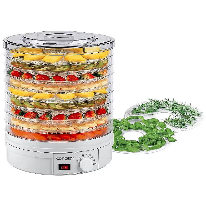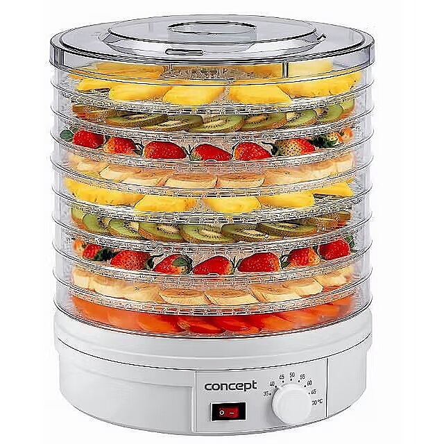 Description - Extend the life of your food Drying is one of the few methods of preserving food without losing important vitamins and minerals. So why not extend the shelf life of foods that we currently have a surplus of? You can dry almost anything, from fruit and vegetables to pasta, flowers and meat. Practical maintenance Dryer maintenance doesn't have to be inconvenient or time-consuming. You can put the dryer's sieves in the dishwasher in peace and quiet so you can focus on more enjoyable activities. Even drying The integrated fan with specially shaped vents ensures perfect results. Your harvest will be perfectly dried on all floors of the dryer.