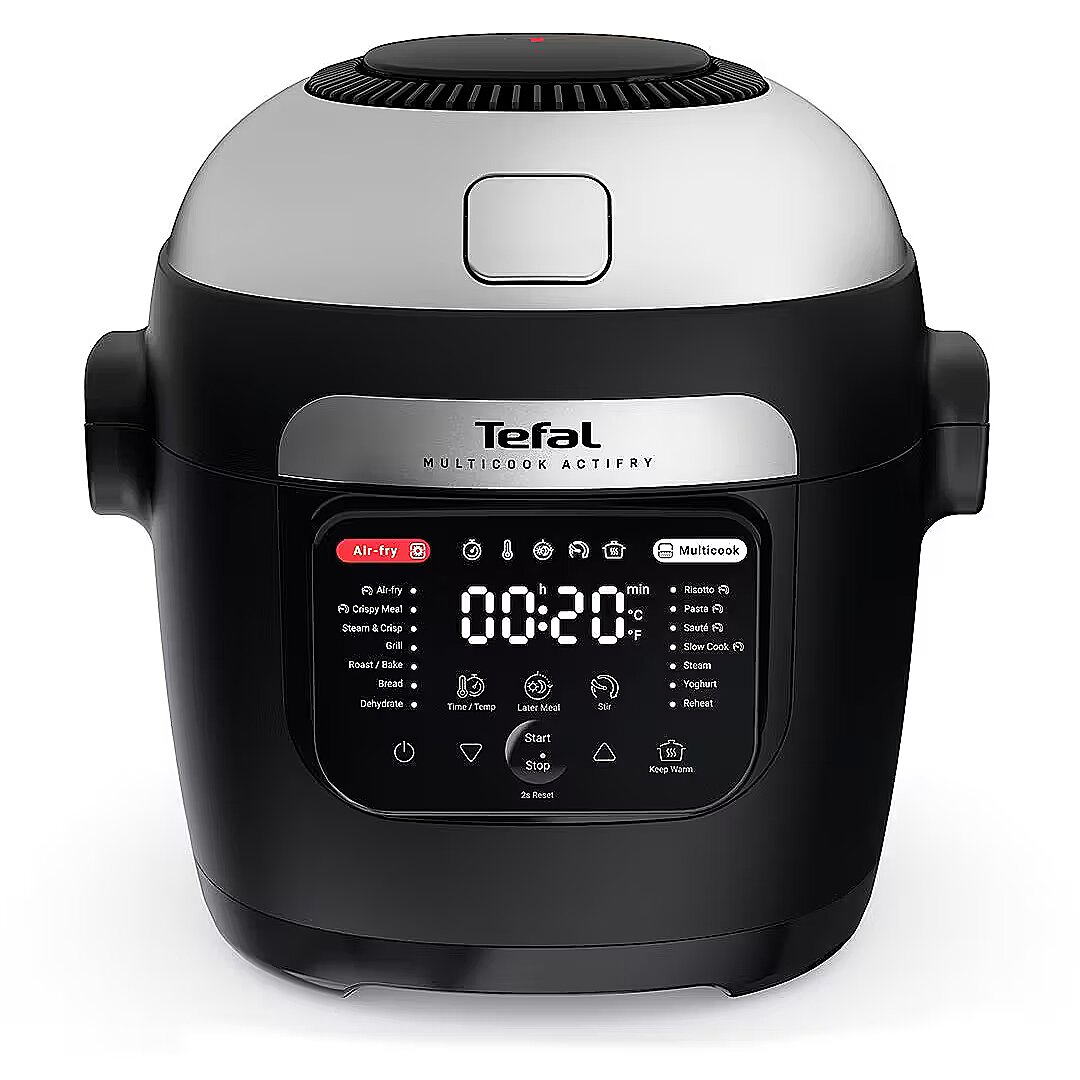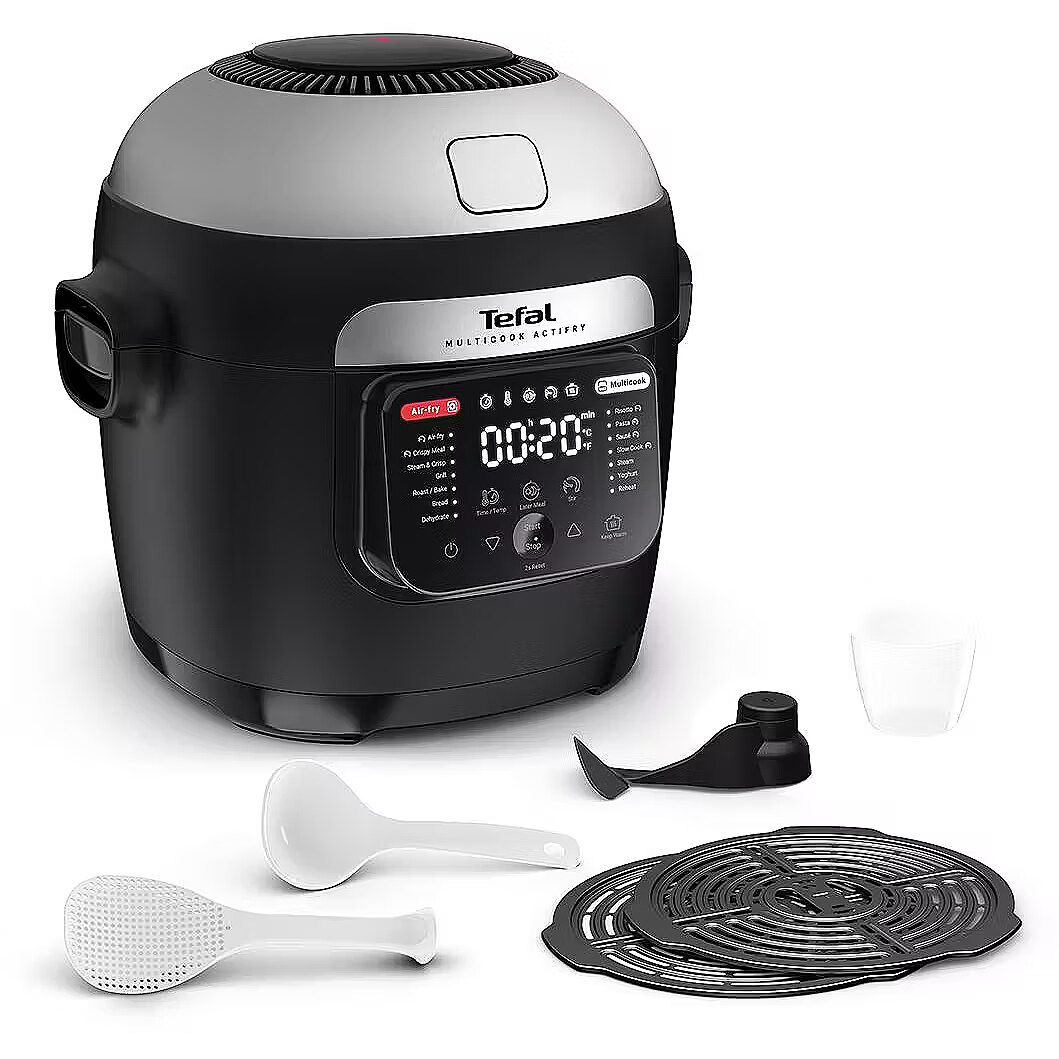 MediumDescription EN - Introducing Multicook Actifry by Tefal, a versatile cooking solution for easy meals cooked to perfection. This combination of a stirring air fryer and multicooker gives your kitchen an upgrade with a full cooking package: 14 automatic programs for hands-off cooking, exclusive Actifry technology that stirs as it fries for crispy, mouth-watering results every time, a multi-layer cooking tray to prepare a full meal in a single go, and so much more! • Versatile: All your favorite crispy foods and an infinite array of healthy, tasty meals in no time with this stirring air fryer and multicooker designed to cover all your cooking needs