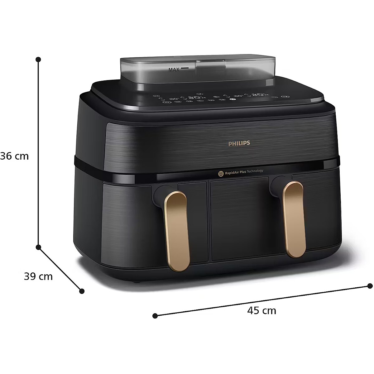 Title - Philips 5000 series NA552/00 fryer Double 9 L Stand-alone 2750 W Hot air fryer Black, Gold