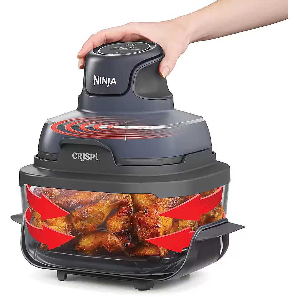 Ninja CRISPi 4-in-1 Portable Glass Air Fryer, 3.8L, Black/Blue