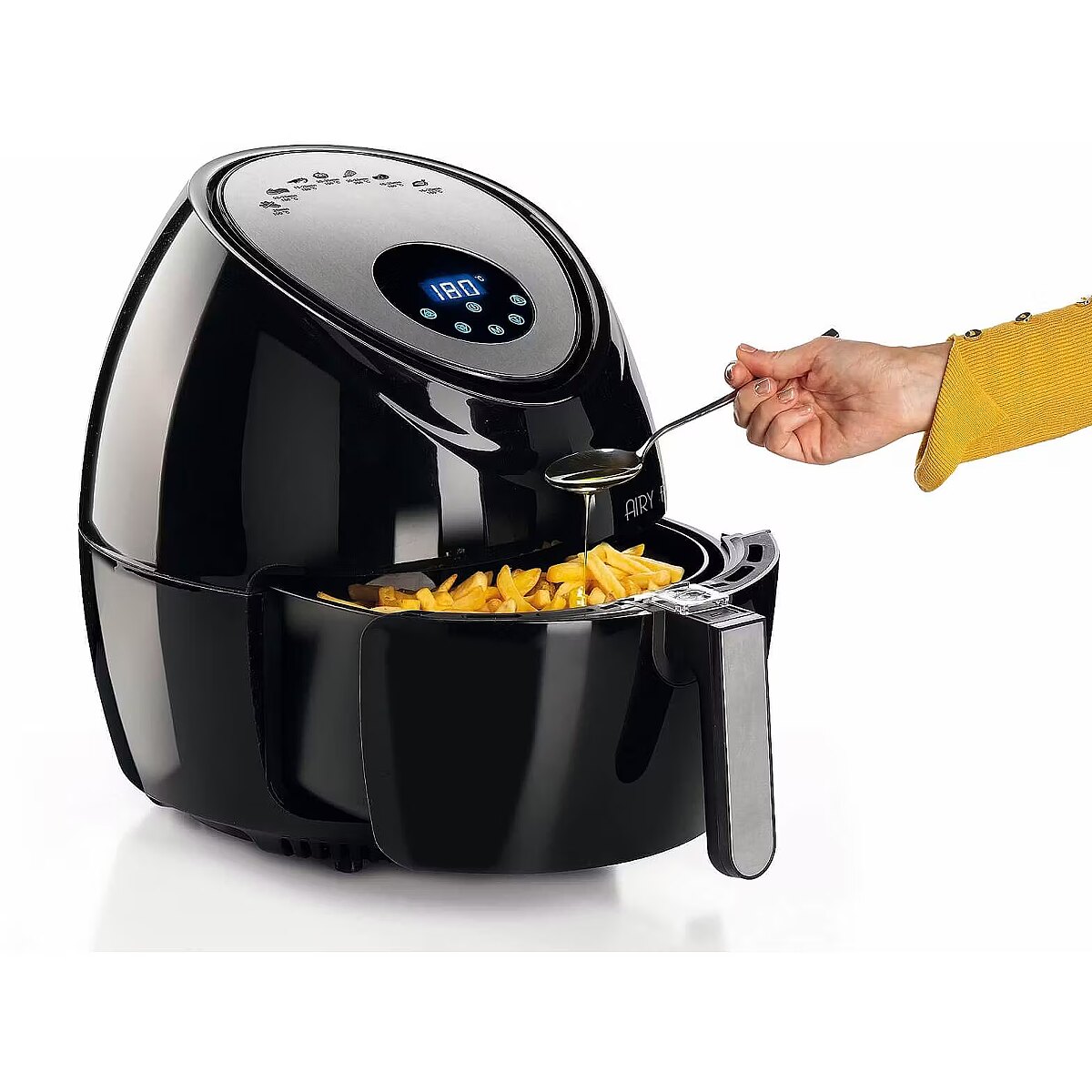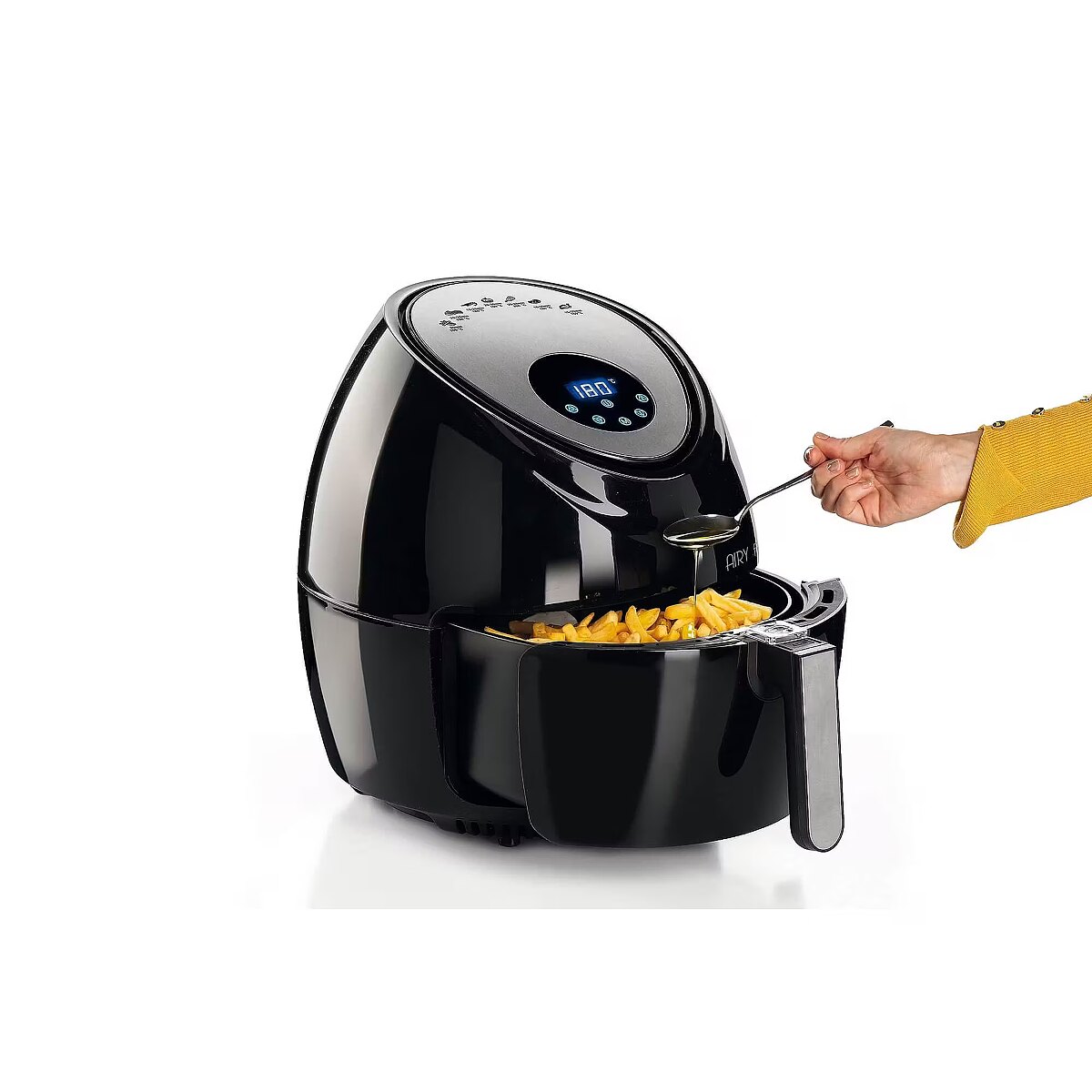 LongDesc - With Ariete's Airy Fryer XXL air fryer you can fry any dish, even in large quantities, using just one tablespoon of oil to obtain healthy and tasty frying at the same time. Thanks to the 5.5-liter XXL basket with Ariete's Airy Fryer XXL you can cook up to 2.5 kg of French fries in one go! French fries, but not only, also croquettes, fish, meat and many other breaded foods, both frozen and ready to fry, and fresh and just breaded, thanks to the 7 preset cooking modes.How does the air fryer work?The air fryer cooks thanks to the high temperature air, up to 200 °, which circulates at maximum speed and at 360 ° inside the cooking chamber and guarantees a uniform distribution of heat inside. It is the hot air that allows the dishes to cook evenly and the formation of a crunchy crust on the outside, which has nothing to envy to traditional frying. Thanks to the hot air, there will be no need to add a lot of oil to get a tasty fried, because a simple spoon is enough, in this way you will bring lighter but tasty foods to the table for the whole family. Airy Fryer XXL cooks quickly, healthily and in large quantities, but its benefits don't stop there! The air fryer avoids smoke and bad smells in the house: when you prepare fried fish or meat, you will not have to worry about the smell of fried, because the air cooking of Airy Fryer XXL does not release the smell of smoke typical of oil fryers . Finally, the air fryer is easy to clean thanks to the removable non-stick basket and has a low environmental impact, because it does not produce waste oil, which is one of the most difficult to dispose of waste in circulation.
