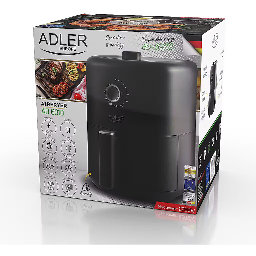 Name - Adler | Airfryer | AD 6310 | Power 2200 W | Capacity 3 L | High-volume hot-air circulation technology | Black