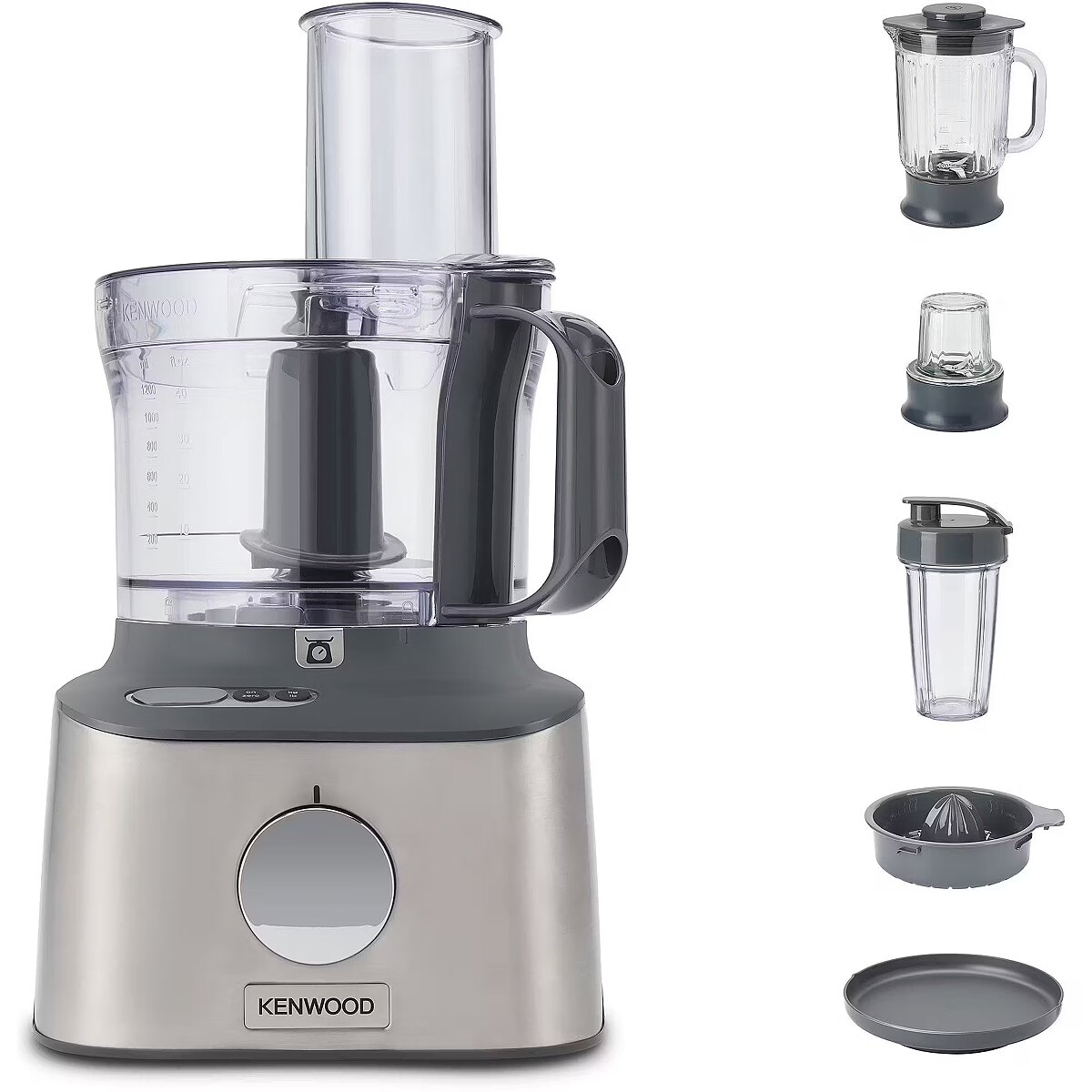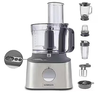 Kenwood MultiPro Compact+ food processor, silver, 800 watts, integrated scale, blender attachment and Blend-Xtract 2GO