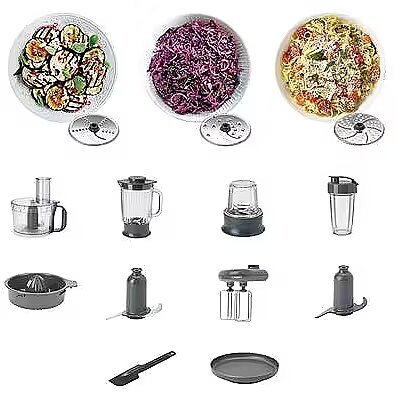 Complete : Blade set, Cover against splashes, Mixing spoon