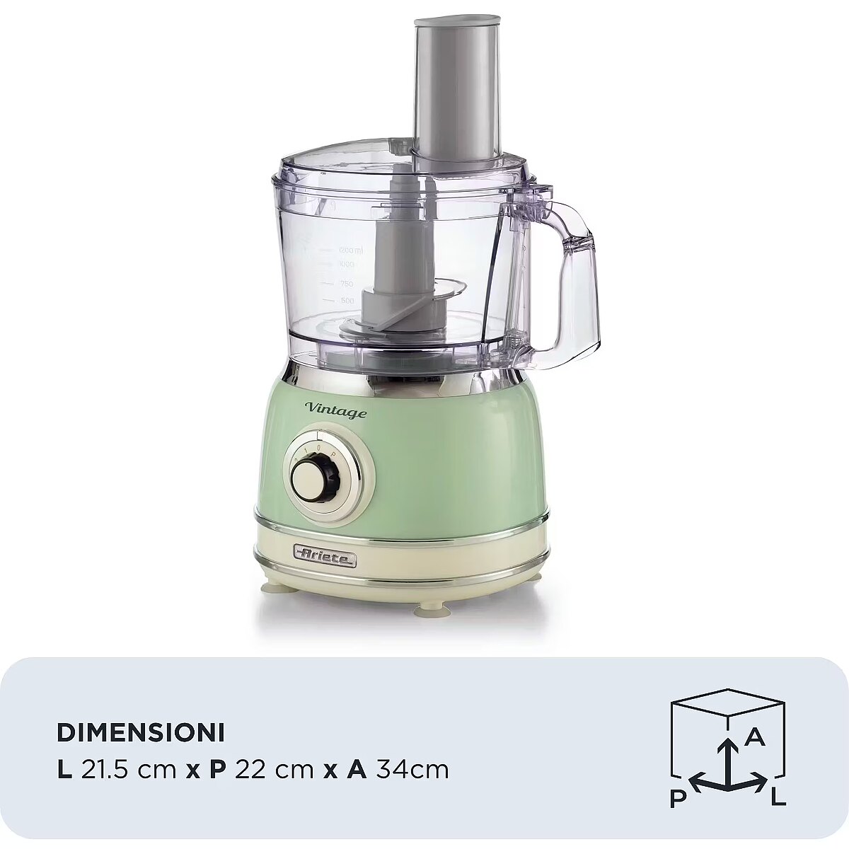 Ariete Vintage Green Multifunctional Food Processor, light green/cream, 1000 watts, 1.2 liters
