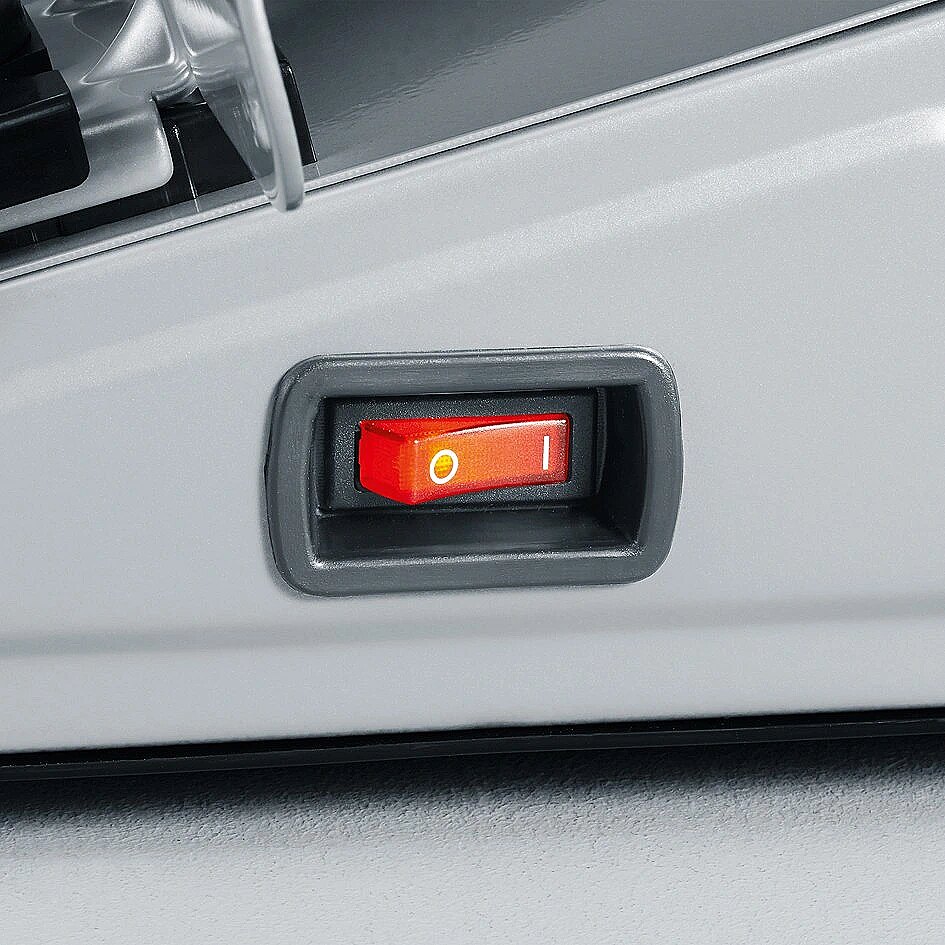 MediumDescription EN - The Severin AS 3915 universal slicer is ideal for everyday use when you need even slices of bread, cheese, or ham. Its angled surface and sturdy metal construction ensure stable, precise cutting and easy handling. A great choice for anyone who values accuracy and low-maintenance use. • Adjustable slicing thickness from 0–15 mm
