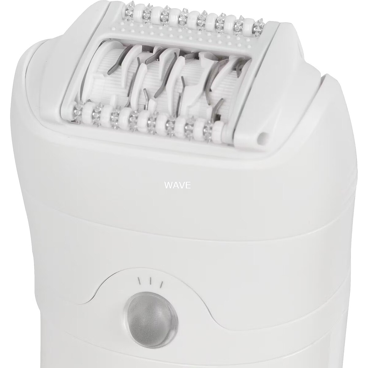 LongDesc - Long lasting smooth skin: Up to 1 month of smooth skin at any time, from the comfort of your home.Precise: Removes hairs that wax can’t. The MicroGrip tweezers can capture hair as short as 0.5 mm.Comfortable Epilation: Features a massage roller cap that helps reduce pain sensation.Gentle hair removal: Wet and dry usage. Gently epilate in the bath or under the shower for less pain, more comfort.Epilate on your own terms with no in between days: Our epilators catch hairs that wax can't and are free of chemicals.Built to Last Years: Our epilators are made in Germany.40min¹ battery: Use wherever & whenever. Convenient cordless use.Smart Light: Reveals even the tiniest hairs to not miss any.