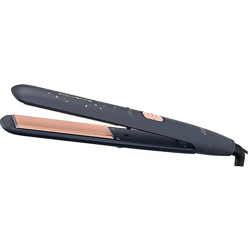 MediumDescription EN - With the Rowenta Express Style Stellar Collection Hair Straightener, you can have it all: effortless straightening, perfect results in no time, and user-friendly styling in a format designed for all hair lengths. The Ceramic Tourmaline coating is the key to perfect glide, with two different temperatures to cover all your needs—180 °C for high-efficiency results and a 210 °C BOOST setting for difficult spots. All this, with 20% longer plates* to cover even the longest hair with total ease. • The simple single-button control with LED indicator and ergonomic design—featuring a comfortable matte surface and rotative cord—ensure easy and smooth styling day after day