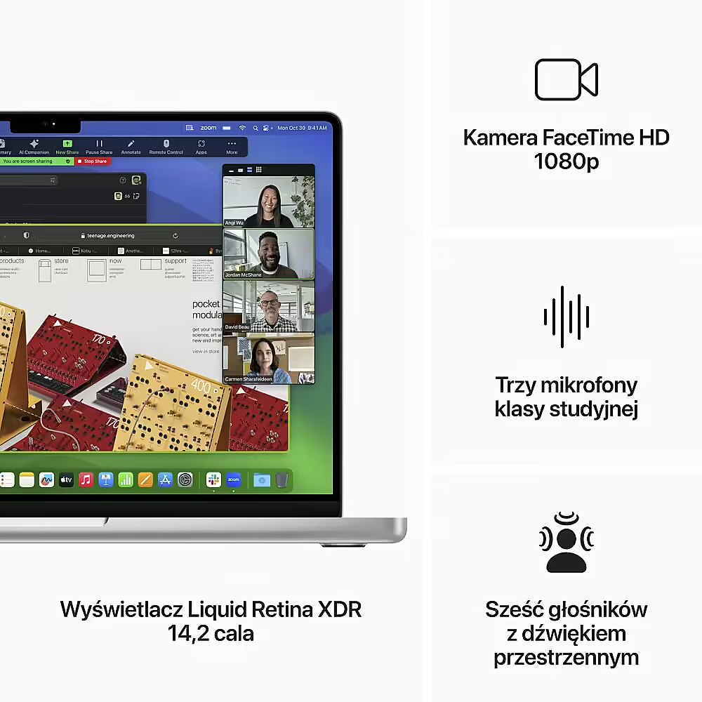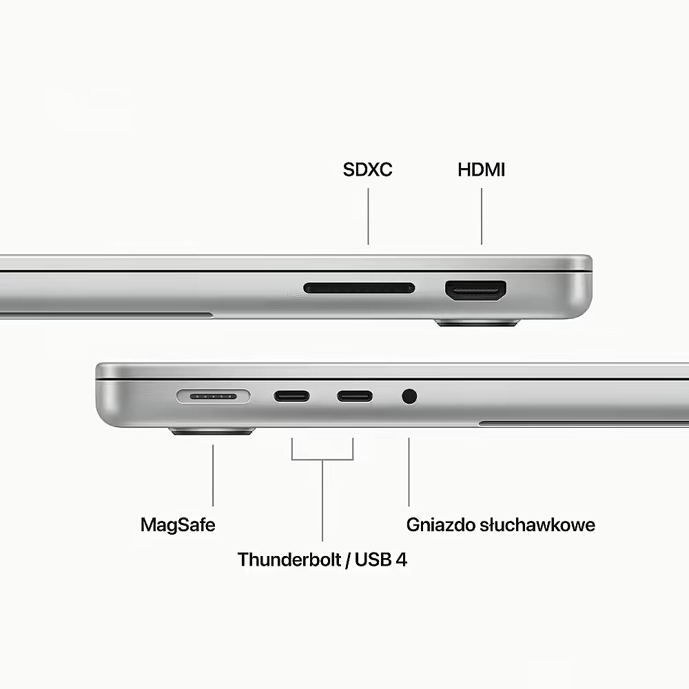 Description - Three bars up. MacBook Pro breaks records with M3, M3 Pro, and M3 Max. These 3nm chips with a new GPU architecture are the most advanced chips we've ever created. And each one boosts performance and functionality to professional levels. Graphics wins. This is a completely new class of GPU architecture. And the biggest breakthrough in graphics in the history of Apple chips. Dynamic caching optimizes the performance of fast unified RAM, radically increasing the average GPU utilization. This results in a huge jump in performance in the most demanding professional applications and games. Graphics in games have never been so detailed thanks to hardware-accelerated mesh shading. And greater capabilities and efficiency at the geometry processing stage allow you to generate more complex scenes. Hardware-accelerated ray tracing. For the first time ever, hardware-accelerated ray tracing runs on MacBook Pro. Combined with the new graphics architecture, this allows for up to 2.5 times faster rendering in professional applications, as well as more realistic shadows and reflections in games. We can go on and on. The MacBook Pro runs on battery life the longest in the history of the Mac, up to 22 hours. The efficiency of Apple's chips allows for things that were previously impossible. All models work just as fast whether connected to a power supply or not. So whether you're inspired or busy, you can do it. Apps in high gear. You can choose from thousands of applications optimized to unleash the full potential of macOS and Apple chips. And the power of the M3 chips increases performance like nothing before. As a result, all applications work like a dream, from those for everyday office tasks to your favorite games to the busiest professional applications. XDR. For devouring with the eyes. Extremely wide dynamic range (XDR) makes light reflections perfectly refined, shadows show a wealth of detail, and colors are vivid and natural. Every Liquid Retina XDR display is factory calibrated and has ProMotion technology and professional reference modes. You sound. You look. You shine. 1080p camera. It has technologies that make you look good in any light, and video calls are more natural and direct. Studio-grade three-microphone array. In audio production, the microphones pick up the slightest noise. And when you speak, they reduce background noise so your voice is loud and clear. Six-speaker system. Four force-cancelling woofers and two tweeters fill the room with clear sound. And Dolby Atmos surround sound creates a three-dimensional acoustic stage. Wide contacts. MacBook Pro has a huge set of ports for connecting fast peripherals or high-resolution displays, and for reading SDXC cards directly. And there's WiFi 6E and Bluetooth 5.3. Safe. At a touch. Magic Keyboard features a full-height row of function keys and Touch ID, which lets you easily and securely unlock your Mac or log in to apps and websites. Security at its core. Your fingerprint becomes an encrypted mathematical key, so you never have to remember passwords again.