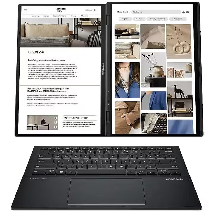 This product Asus Zenbook Duo UX8406CA-PZ067X ARL H Core Ultra 7 14.0" 3K 120Hz 400nits Glossy 32GB LPDDR5X SSD1TB Intel Arc Graphics WLAN+BT Cam 75WHrs W11Pro Inkwell Gray