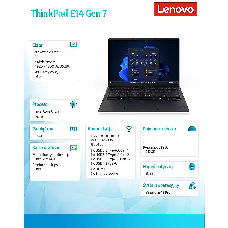 ShortSummaryDescription - Lenovo ThinkPad E14 Gen 7 (Intel), Intel Core Ultra 7, 35.6 cm (14"), 1920 x 1200 pixels, 16 GB, 512 GB, Windows 11 Pro