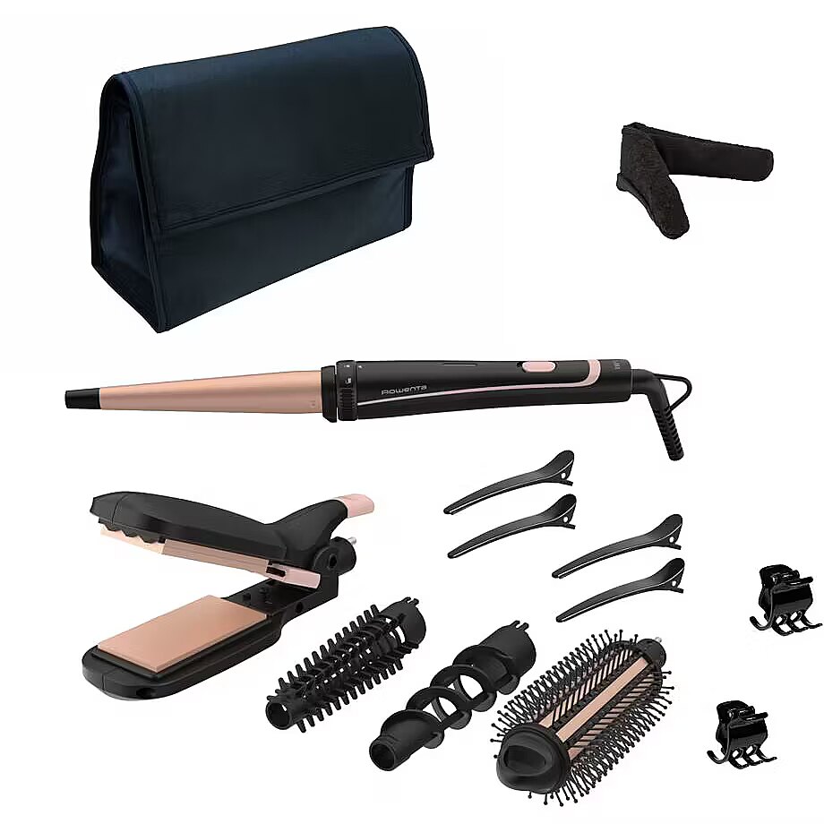 • 14-ühes – kooniline võlukepp lokkide rullimiseks, 32 mm ümmargune soojendusega hari volüümi ja kohvuse jaoks, 2-ühes sirgendaja/kortsutaja moodsa ja muljetavaldava sirgendamise jaoks ning palju muud.