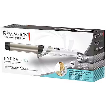 Description - HYDRALUXE CURLING IRON CI89H1 Voluptuous curls for an important date or soft waves for a garden party? With the Remington Hydraluxe Curling Wand it's easy to create the style you want and your hair will shine like never before. It's all down to a revolutionary Moisture Lock Ceramic Coated Heater that maintains the right balance of moisture in your strands. The Hydracare temperature setting allows you to create beautiful curls at just 185°C, minimising the risk of heat damage. No curling iron has ever taken such good care of your hair. Hollywood curls You can look like a movie star too. And every day! With the Hydraluxe curling iron you can create soft curls or subtle waves and give your hair a beautiful healthy glow. This is all thanks to the ceramic coating of the Moisture Lock heater, which is soaked in micro conditioner. When the heat is applied, the molecules are transferred to your hair and ensure your hair is perfectly moisturised. Now you can conquer the world! Hydracare is styling without damage Curling your hair with a curling iron doesn't have to mean heat damage and dry strands. With Hydracare technology you can create luscious curls at a lower, healthy temperature. It's fabulously easy! Simply select the Hydracare setting and the Hydraluxe curling iron will automatically adjust to 185°C. And you're ready to enjoy beautiful hair and healthy hair. Always a perfect result Play around with styles and try out new hairstyles. With the Hydraluxe curling iron you can create both soft waves and full, bouncy curls. With its 32 mm heater you have so many possibilities! And it has a non-slip coating so you have complete control over the styling result. No strands of hair will escape.