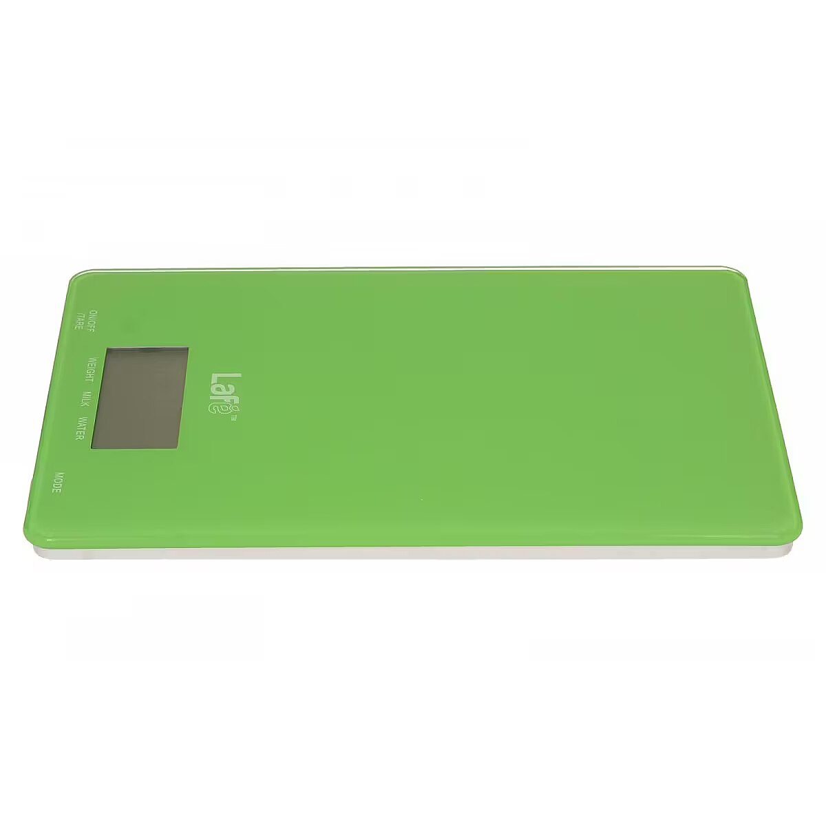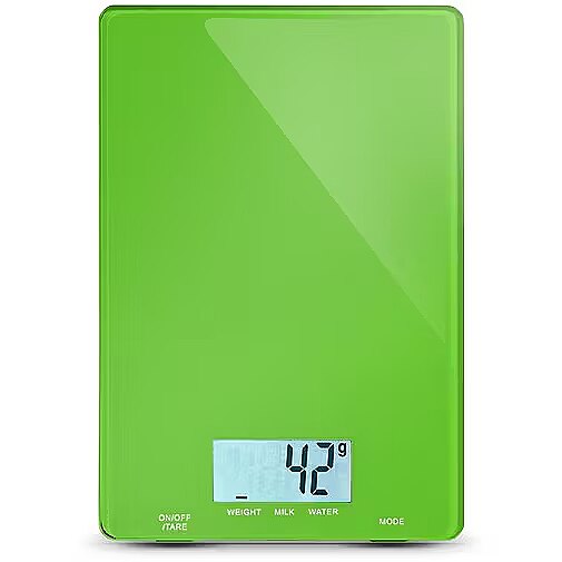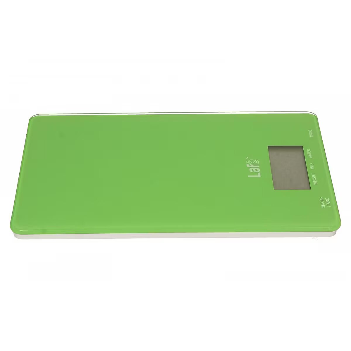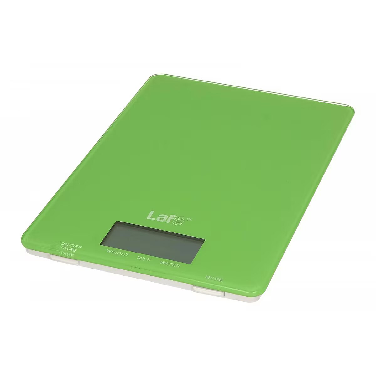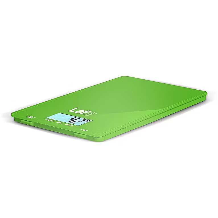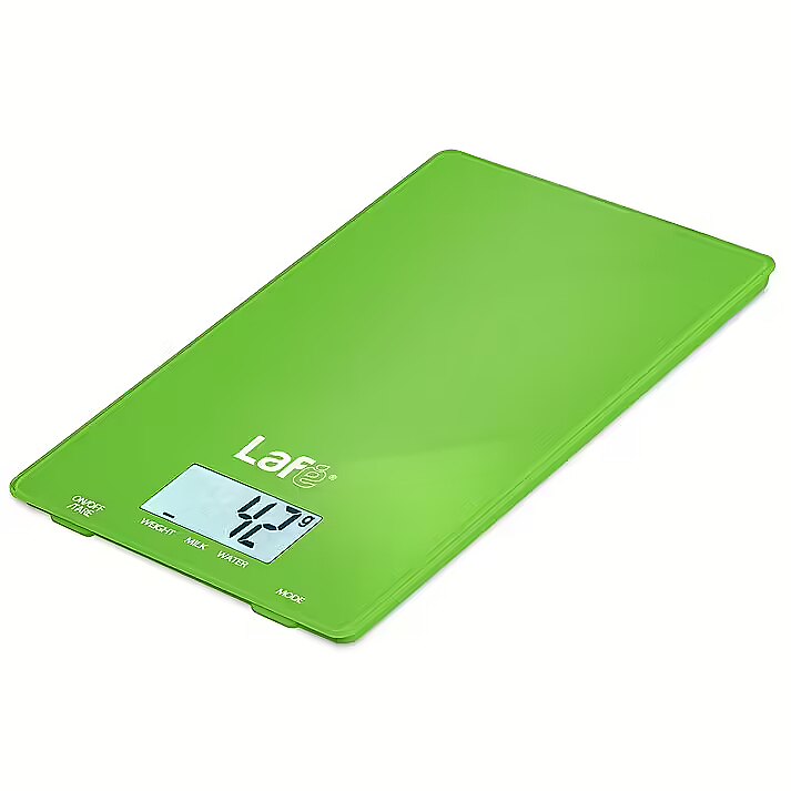 Waga LAFE WKS001.2 to elektroniczna waga kuchenna w kolorze zielonym. Niezwykle pomocna przy przygotowywaniu dań wymagających określonych porcji produktów. Jej szklana platforma o wymiarach 22x15 cm wyposażona w bardzo precyzyjne czujniki, pozwala na zważenie nawet niewielkich ilości produktów z wielką precyzją. Waga waży w zakresie od 0 do 5 kg a z dokładnością 1g.Dzięki wbudowanemu systemowi wyposażonemu w funkcję tarowania można też użyć np. swojej ulubionej miski, lub kubka do zważenia wszelkich sypkich produktów jak mąka, ryż, cukier, mleko itp.Jej niewielkie gabaryty pozwalają wygodnie ją przechowywać, a uchwyt z tyłu obudowy pozwala powiesić np. na kuchennym niezbędniku, haczyku czy kołku.Waga jest wyposażona w przydatne funkcje, począwszy od ręcznego lub automatycznego włączania i wyłączania, aż po funkcje obliczania objętości wody i mleka, co jest przydatne, kiedy brakuje miarki. Wartość pomiaru wskazuje cyfrowy wyświetlacz LCD który może wskazywać pomiar w różnych jednostkach : g / lb:oz / ml / fl:oz.