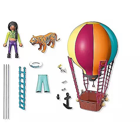 Accessories included - Figurki: 1 kobieta Zwierzęta: 1 tygrys, 1 kakadu Akcesoria: 1 balon z koszem i 4 drabinkami, 1 wisząca drabinka linowa, 1 kotwica na sznurku, 4 worki z piaskiem