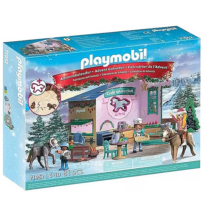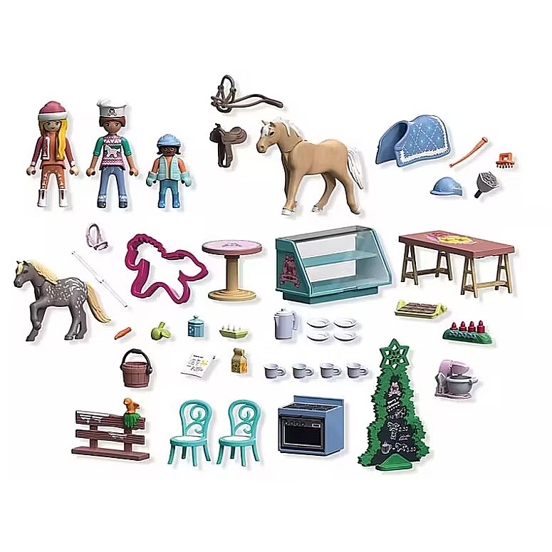 Description - Święta Bożego Narodzenia w Waterfall zbliżają się wielkimi krokami. Mmmmh - niebiański zapach ciasteczek i ponczu unosi się w przytulnej, małej kawiarni Ellie. Smakołyki dla koni są już przygotowane. Dodatkowo dzięki pomysłowej foremce do ciastek w kształcie konia możesz upiec ciasteczka również w domu. W świątecznej kawiarence Ellie magia Bożego Narodzenia spotyka się z urokiem wiejskiego życia. Dzieci mogą pomagać w pieczeniu sezonowych smakołyków, używając uroczej foremki w kształcie konika - idealnej do wspólnej zabawy w domowej kuchni. Piekarnik się otwiera, więc pierniczki lub ciasteczka można upiec i podać z bożonarodzeniową radością. Udekoruj kawiarenkę, podnieś szklaną witrynę i ułóż wypieki na ladzie tak, jak chcesz. Zestaw PLAYMOBIL pełen zwierząt, świątecznych dodatków i rodzinnego ciepła to gwarancja niekończącej się, kreatywnej zabawy. Idealny na każdą świąteczną przygodę!