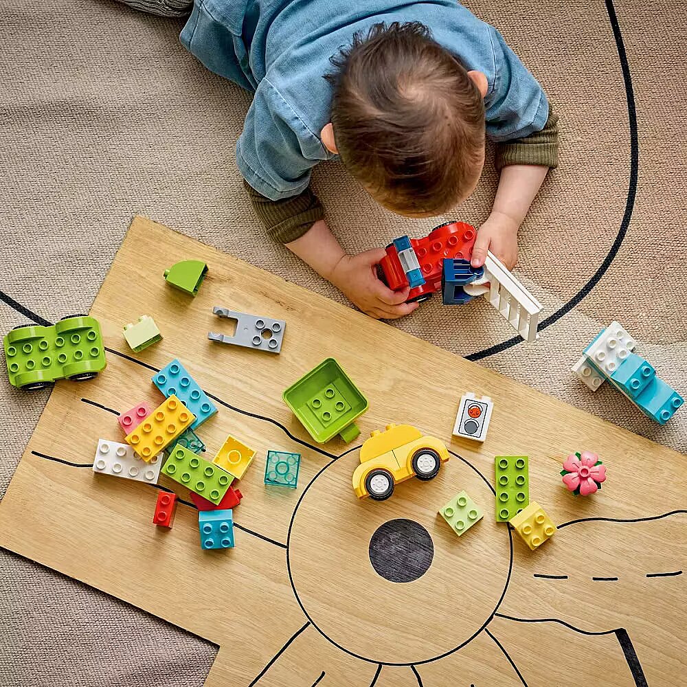 First, little ones build the main LEGO DUPLO models: a helicopter with a spinning rotor, a dump truck with a tilting trailer, a fire truck with a hinged ladder, and a small family car. Then, they use their fine motor skills and hand-eye coordination to take apart the bricks from these models and add creativity and additional bricks to create entirely new creations. From police cars to extra-long trucks or double-decker buses, little ones can unleash their creativity by combining LEGO DUPLO bricks in new and surprising ways.