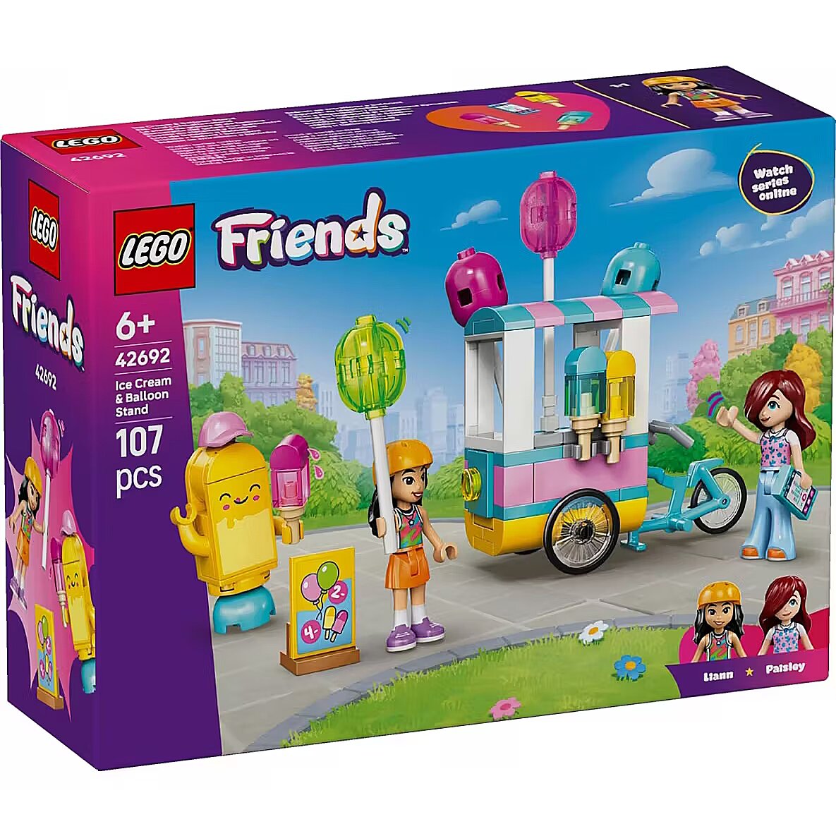 Description - Blocks Friends 42692 Ice Cream and Balloon Stand With the LEGO Friends Ice Cream and Balloon Stand (42692), girls and boys aged six and up can enjoy sweet adventures and spend time creatively. This role-play toy features interesting details and cute accessories that spark childrens imagination. The mini-dolls Liann and Paisley help children immerse themselves in a story about preparing a stand to sell balloons and frozen treats. Liann wears a helmet and is ready to ride the bike that pulls the food stand. The fun continues with an adorable ice-cream-shaped mascot, as well as a menu, cash register, and phone. Theres also a table where the friends can spend time together. This set makes a great birthday gift for girls and boys who love role-play play. Children can discover a new dimension of building with the LEGO Builder app, where they can zoom in and rotate the model, view 3D instructions, and save and track their progress. The set contains 107 pieces.