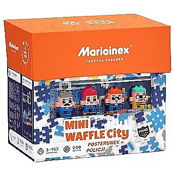 Description - Waffle Mini Construction Blocks - Police Station Alert! Police! The dangerous villain Fantom has escaped the hands of the law enforcement officers and made a mad escape. Will Commissioner Ernest, together with the astute detective Lora and the brave policeman Max, catch the dangerous villain? Will the helicopter and car at their disposal be enough to outwit the evil genius and protect the city from danger? Build a police station and take care of the safety of the town's residents. Patrol the streets in a police car, and in the event of a greater threat or pursuit, take to the air in a helicopter! Prepare yourself that this time you will not be dealing with a common thief, but with the cunning villain Fantom, for whom getting out of prison is not a big problem The Police Station set consists of 280 elements and four unique figures. Take on the role of heroic policemen and catch the villain or choose the side of the ruthless villain and play cat and mouse with the police. Combine the set with others from the Waffle City series and expand the town with a Police Station equipped with a helicopter and a super-fast police car. Assemble the set according to the instructions or unleash your child's imagination and construct your own, unique building with it! The Police Station set combines the learning of logical spatial thinking with the unique fun of cops and robbers.   The characters of the set: Commissioner Ernest an experienced Police Commissioner, whose great intellect is able to stop the destructive activities of the Phantom. Detective Lora a young and brave policewoman, who is not afraid of any villain. She can control a helicopter! Policeman Max the fastest policeman in the city. Not only because he drives the latest generation of ultra-fast police car. Max is known for his incredible speed in catching criminals. An evil genius phantom who has been terrorizing the town for many years. Every time he was caught, he still found a way to escape. Will it be different this time? Advantages of the set: Develop your child's imagination and creativity through joint play 100% safe certified and safe materials Attractive, many hours of fun for your children and you! Construct shapes in 2D and 3D Blocks manufactured in Poland Blocks and packaging made of renewable materials in recycling For children from 3 years of age Warning Toy not suitable for children under 36 months. Contains small parts, easy to swallow. This product meets European standards. Remove the packaging elements before giving the toy to a child. Keep the label because it contains important information. The colors of the elements may differ from those presented on the packaging. Maintenance The toy should be washed under running water with the addition of soap.