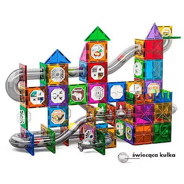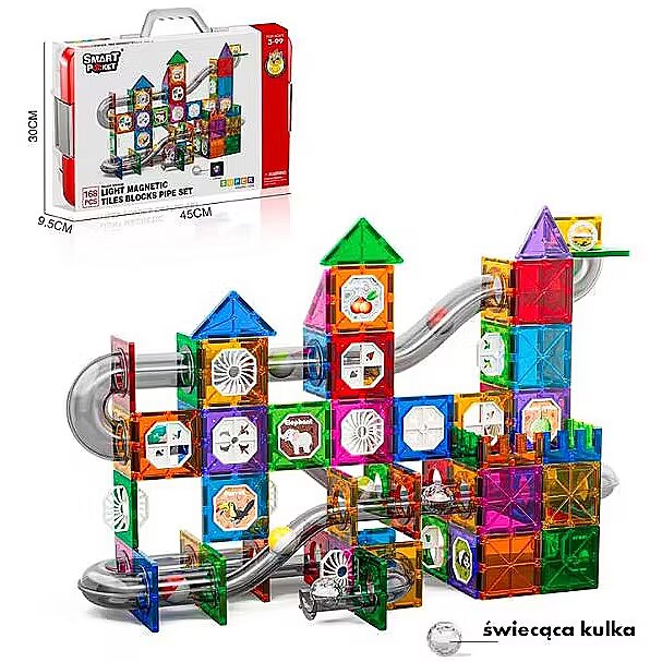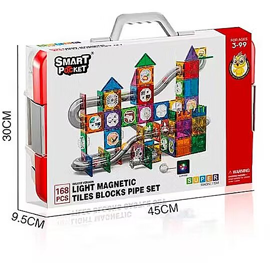 Description - A large set of glowing magnetic blocks. Contains 168 elements. Glowing ball. Batteries required: 1xGR1220 (included).