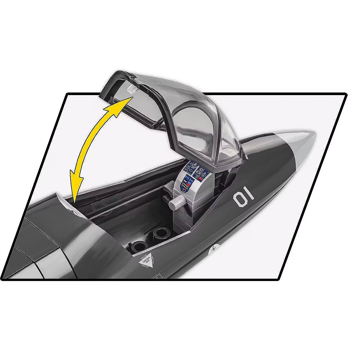 Z 610 najwyższej jakości klocków konstrukcyjnych COBI wybudujesz wydany na licencji megakoncernu zbrojeniowego Lockheed Martin najnowocześniejszy na świecie wielozadaniowy myśliwiec F-35B LIGHTNING II. Zestaw został starannie zaprojektowany w modelarskiej skali 1:48. Specjalnie zaprojektowane na potrzeby tego zestawu klocki zostały pokryte wysokiej jakości nadrukami. Charakterystyczna kabina pilota wykonana jest w sposób bardzo realistyczny i można ją otwierać, aby mieścić w środku figurkę pilota wyposażonego w kask i maskę tlenową z wężykiem. Kupując samolot, zbudujesz również klockową podstawkę ekspozycyjną z tabliczką zawierającą nazwę zestawu!