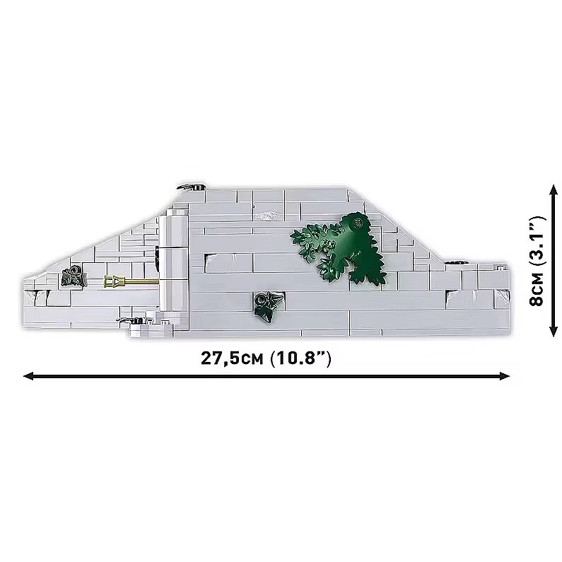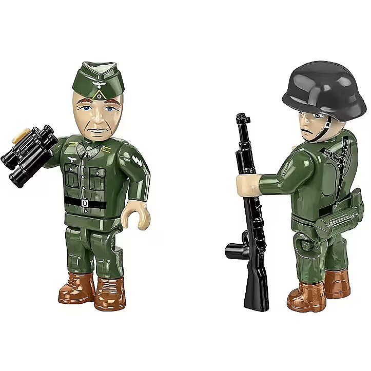 Description - Zestaw Regelbau 667 od COBI to wspaniałe uzupełnienie kolekcji HISTORICAL COLLECTION World War II. Dzięki 642 wysokiej jakości klockom będziesz mógł odwzorować jeden z najważniejszych elementów niemieckiej obrony, używany w czasie II wojny światowej. Schron Regelbau 667 został zaprojektowany z myślą o ochronie niemieckich żołnierzy przed spodziewaną inwazją aliantów. Jego głównym celem było zapewnienie schronienia i bezpieczeństwa nie tylko żołnierzom, ale także cennemu sprzętowi wojskowemu, który był niezbędny do prowadzenia działań wojennych. Dzięki solidnej konstrukcji z betonu i stali zbrojeniowej bunkier był odporny na ostrzał artyleryjski oraz bombardowania, co czyniło go niezwykle trudnym do zniszczenia. Takie umocnienia miały na celu nie tylko obronę przed bezpośrednim atakiem, ale także zapewnienie przewagi strategicznej w trudnych warunkach wojny. Były one istotnym elementem w tworzeniu linii obrony, która miała za zadanie powstrzymywać inwazję sił alianckich. Zbudowanie modelu Regelbau 667 od COBI to nie tylko zabawa w klockowe modelarstwo, ale także głębsze zrozumienie historycznego kontekstu, w którym te bunkry miały swoje miejsce. Zalety zestawu Regelbau 667 German Bunker: Skala 1:35 - Bunkier Regelbau 667 w skali 1:35 zapewnia niesamowitą dokładność, pozwalając na stworzenie w pełni funkcjonalnego modelu. Schron pasuje rozmiarem do obszernej i wciąż intensywnie rozwijanej kolekcji WW2 i w sam raz nadaje się do tworzenia dioram, scenek i klockowych kompozycji z wykorzystaniem modeli i figurek COBI. Każdy element jest odwzorowany z dbałością o detale, co czyni go nie tylko doskonałym obiektem do budowy, ale również imponującą ozdobą na półce. Realistyczne figurki - W zestawie znajdują się dwie figurki: niemieckiego żołnierza i radiooperatora, które dodają realizmu i mogą być wykorzystywane w dioramach, scenkach bitewnych lub po prostu jako element dekoracyjny. Te figurki świetnie pasują do schronu, a ich detale odwzorowują autentyczny wygląd żołnierzy z czasów II wojny światowej. Prosta instrukcja budowy - Zestaw jest wyposażony w szczegółową, ilustrowaną instrukcję, która umożliwia łatwą budowę, niezależnie od poziomu zaawansowania. Proces składania jest przyjemny i edukacyjny, a efekt końcowy - satysfakcjonujący. Otwierany dach - Model posiada otwierany dach, co pozwala na wgląd do wnętrza bunkra. Ta funkcja ułatwia zabawę i zachęca do odgrywania scenek, ale także daje możliwość zobaczenia, jak wyglądało wnętrze schronu i co się w nim kryło. Dodatki uzupełniające - Model schronu uzupełniają dodatki, takie jak roślinne maskowanie, beczki na prowiant czy worki z piaskiem. Dodatkowo w bunkrze mamy armatę przeciwczołgową KwK 39L, radiostacje, granaty i karabiny typu MP-40 i Mauser Kar98k. Zabawka i ozdoba w jednym: Po skończonej zabawie ten realistyczny model stanie się świetną ozdobą pokoju, która na pewno przyciągnie wzrok każdego fana historii. Szeroki wybór: Sprawdź inne pojazdy z serii HISTORICAL COLLECTION World War II i twórz własną kolekcję historycznych maszyn! Zestaw COBI Regelbau 667 to doskonała okazja, by połączyć pasję do historii i klockowego modelarstwa. Dzięki temu masz szansę nie tylko zbudować imponujący, szczegółowy model bunkra, ale również zgłębić historię jednej z najbardziej rozpoznawalnych fortyfikacji II wojny światowej. Zestaw jest idealny dla miłośników dioram wojennych, kolekcjonerów modeli i każdego, kto pasjonuje się historią! Zbuduj swój własny bunkier Regelbau 667 i odkryj fascynujący świat umocnień wojennych! 642 wysokiej jakości elementy Wyprodukowane w UE przez firmę z ponad 35-letnią tradycją Spełniają normy bezpieczeństwa dotyczące produktów dla dzieci W pełni kompatybilne z innymi markami klocków konstrukcyjnych Czytelna i intuicyjna instrukcja oparta na rysunkach i ikonach 2 figurki Skala 1:35