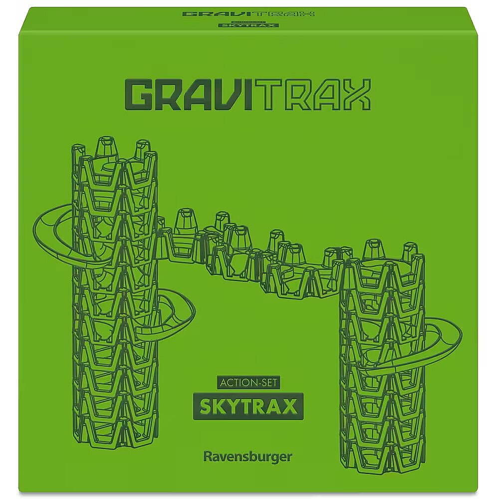 Description - Zestaw startowy Gravitrax Skytrax M GraviTrax Skytrax przenosi budowanie na zupełnie nowy poziom - i to dosłownie! Innowacyjne elementy pozwalają tworzyć konstrukcje zarówno w pionie, jak i w poziomie! Twoje budowle będą wyższe niż kiedykolwiek wcześniej, a kulki będą spadać, przyśpieszać i mknąć przez kolejne poziomy. Skytrax wprowadza również zupełnie nowy sposób budowana mostów. Dzięki specjalnym łącznikom kulki mogą poruszać się ponad planszą, co otwiera zupełnie nowe możliwości projektowania toru. Zbuduj pełną zakrętów i nieoczekiwanych przeszkód trasę dla jednej lub kilku kulek!