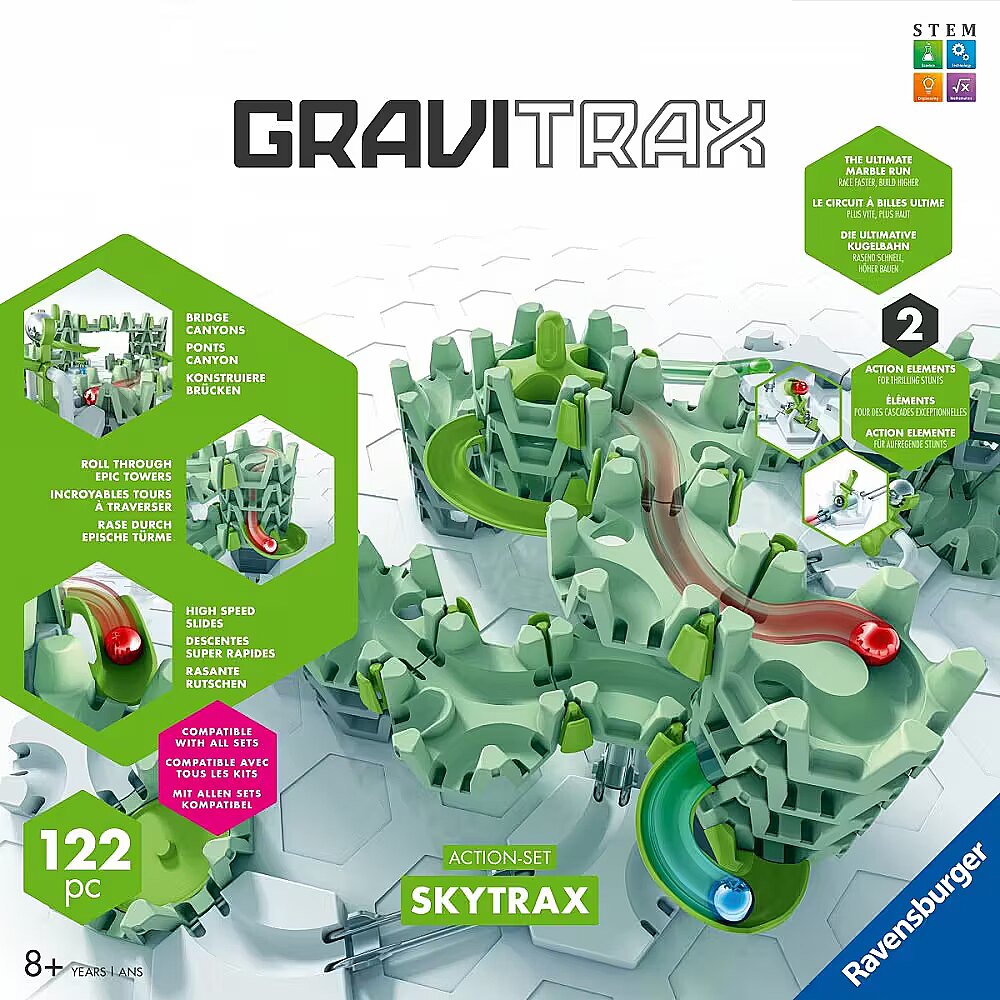 Zestaw Startowy GraviTrax Skytrax można rozszerzać w nieskończoność, ponieważ produkty GraviTrax łączą się ze sobą!