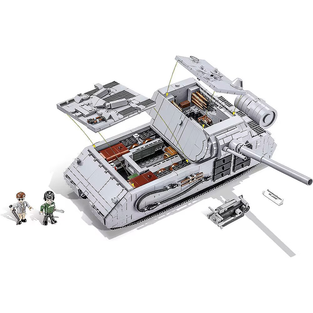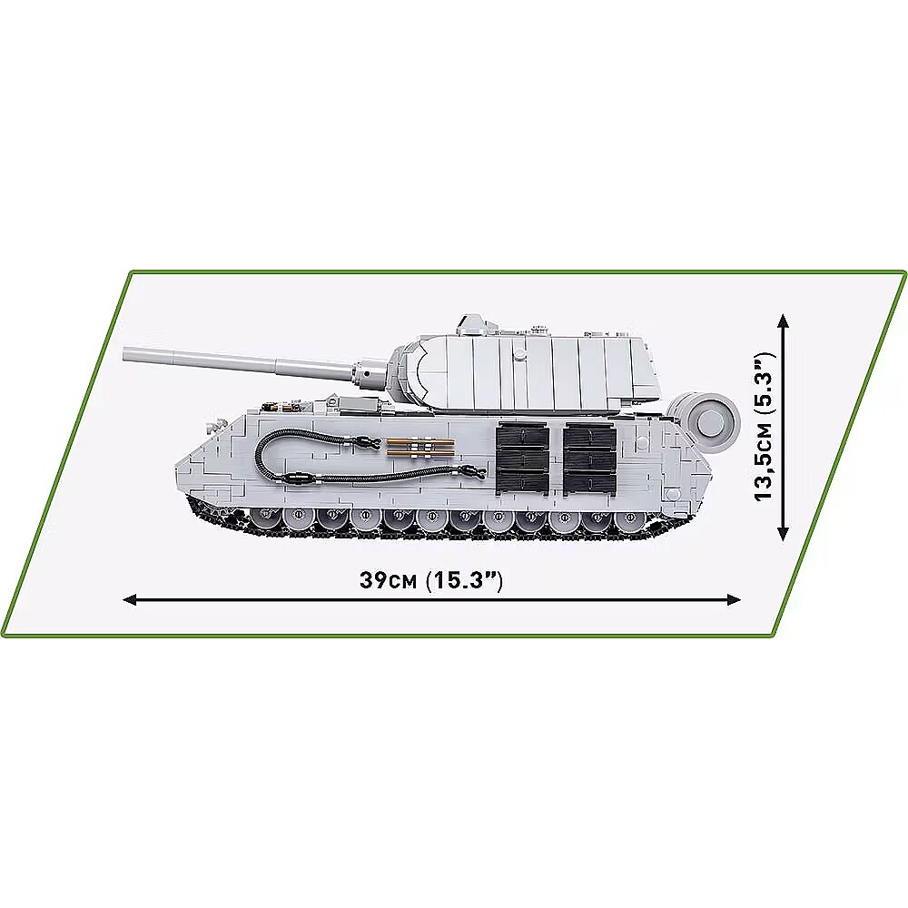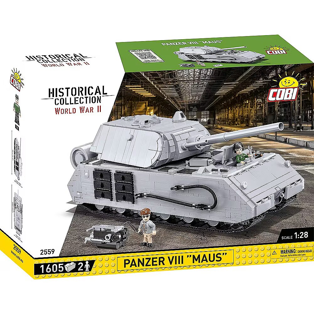 Description - There is probably no other tank which arouses so much curiosity. It is surrounded by an aura of mystery, and facts are mixed with legends that have grown over the years. Panzerkampfwagen VIII "MAUS" is a prototype German super heavy tank from the Second World War. It was the heaviest and largest tank ever built. It weighed approximately 188 tons! The project was implemented in 1942-1944, and only two unfinished prototypes were built, which never entered service. In April 1945, the Red Army captured both abandoned Maus prototypes, which were located at the Kummersdorf training ground. They were used to assemble a vehicle with the hull of the first prototype and the turret of the second. This hybrid is still one of the main attractions of the Tank Museum in Kubinka near Moscow. Panzer VIII "MAUS" in LIMITED EDITION is a very special model in COBI collection! It was built completely from scratch in 1:28 scale and is 39 cm long. Thanks to removable covers on the turret and the fuselage you can access the interior, which has been recreated in detail. Removable engine, opening hatches, movable barrel and working caterpillar traction are other advantages of this kit. Presented in the context of factory construction, the tank has been covered with high-quality prints that will not wear off during intensive use. The LIMITED EDITION has been expanded with attractive additions depicting a design table and a board with construction plans. The removable engine has been given a signature stand. Five figures depict people involved in the construction of the tank prototype. These are the famous German designer and engineer Ferdinand P., a menacing-looking scientist, a general, and the standard-version welder and mechanic figures. The figures have been equipped with new elements (detachable shoes and feet in several types). This allows for even more individual creation of the figures. The whole set is completed with a numbered and laser-engraved plaque with the name of the set and a paper certificate of authenticity signed by the President of the COBI Company. "MAUS" is a must-have item for lovers of history, armored weapons and the mysteries of World War II. The beautiful and huge model will ideally complement your tank collection, becoming its main element. Thanks to the intuitive instructions the construction is easy, although due to the unique construction with the interior, the large number of elements and the time needed to assemble the set we recommend the model to slightly older builders.