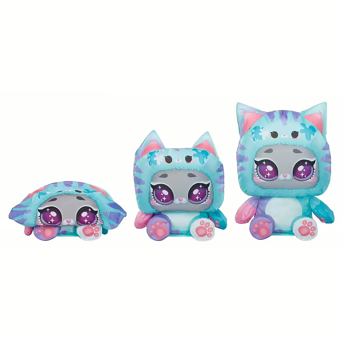 First, rip open the zip at the bottom of the package and lift up the outer pink cover to reveal mysterious wrapping paper! Watch as the paper gets bigger and fuller, and when fully inflated, tear the paper and reveal your adorable turquoise kitty costume! But wait, the surprises don't end there! Unfasten the Velcro on the back of the kitty's head to reveal the gorgeous Emo Emma Tweens doll hidden inside!