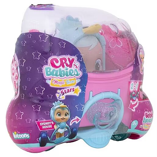 Description - Cry Babies Magic Tears Stars Houses Doll, Sydney The 2-in-1 capsule is not only an adorable doll's house, but also a vehicle that will provide unforgettable moments of fun.  The Stars Houses Lady is one of three houses available. The others are the Coney house and the Lady house. Each hides unique surprises that will delight both small and large fans of Cry Babies Magic Tears.