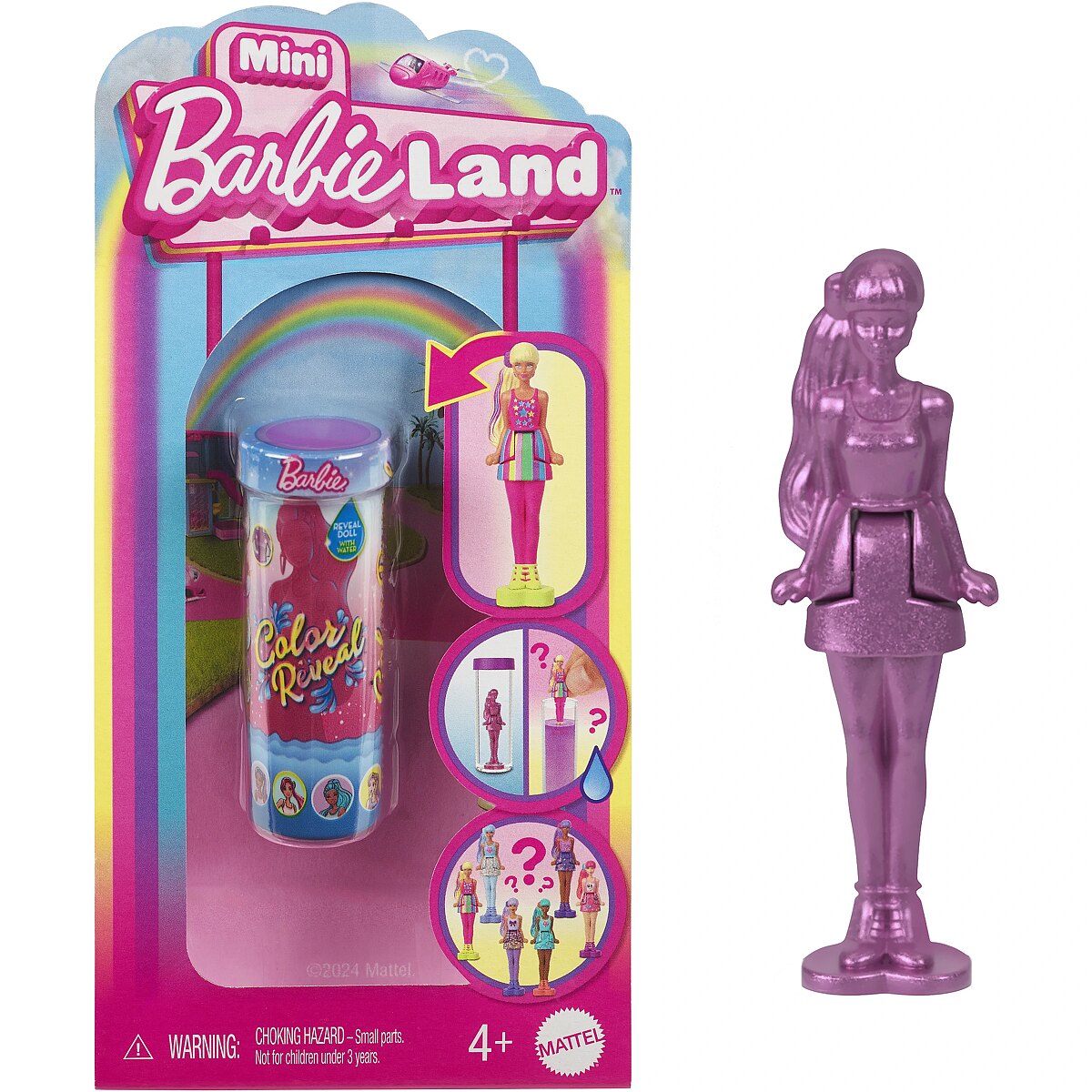 LongDesc - Enter the world of Barbie doll with Mini BarbieLand -- a place to imagine big and Dream in Mini! With Mini BarbieLand Colour Reveal dolls, there's big unboxing fun and a teeny surprise. Open the small tube, pull out a mini doll covered in a colourful coating, then use water as directed to see the doll's look -- so easy! Which doll will you reveal? Each 1.5-inch doll bends at the waist and stands on a heart-shaped base that fits into Mini BarbieLand playsets (sold separately). Also use the mini packaging tube to store the doll. Fans ages 4 years and older will want to collect all these cute dolls to build their own mini world! Each sold separately, subject to availability. Colours and decorations may vary.