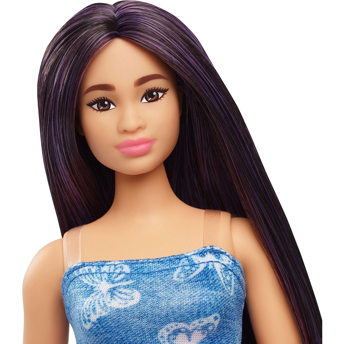 Description - Barbie Fashionistas dolls celebrate diversity and offer endless possibilities for storytelling and fashion exploration. With this inclusive collection, kids can see how fun it is to express personality through style! Barbie Fashionistas are an ideal gift for fashion-loving kids everywhere. Each sold separately, subject to availability. Dolls cannot stand alone. Colors and decorations may vary. Designed to reflect the world kids see today, this diverse line of Barbie Fashionistas dolls showcases bright and trendy styles that inspire endless storytelling possibilities. Barbie doll has a curvy body type and wears her purple hair loose! Her look features fun details that make her personality pop, like a pastel pink belt and matching ankle boots. Her strapless denim dress is darling with its butterfly print and asymmetric hem! It makes a charming addition to any wardrobe. With such a versatile and stylish look, this Barbie doll is ready for any adventure that kids dream up! Kids 3 years and up can collect other Barbie Fashionistas dolls for even more fun with friends and fashion at playtime!