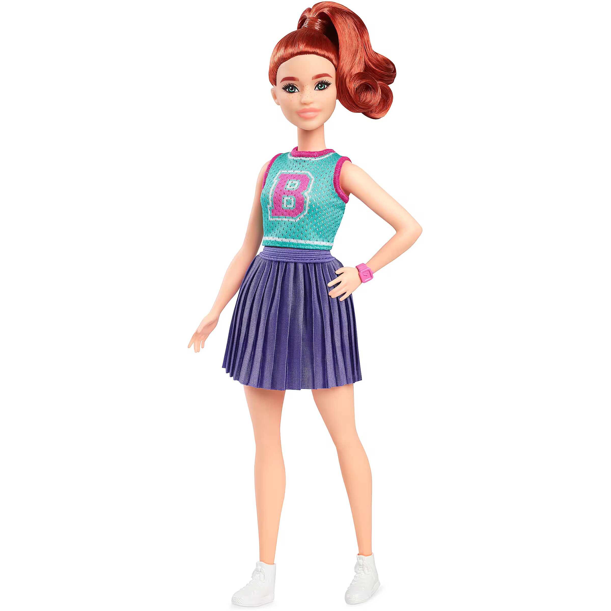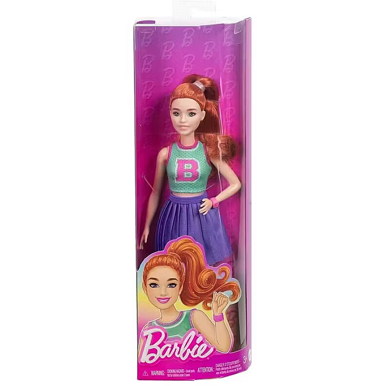 Description - Barbie Fashionistas dolls celebrate diversity and offer endless possibilities for storytelling and fashion exploration. With this inclusive collection, kids can see how fun it is to express personality through style! Barbie Fashionistas are an ideal gift for fashion-loving kids everywhere. Each sold separately, subject to availability. Dolls cannot stand alone. Colors and decorations may vary. Designed to reflect the world kids see today, this diverse line of Barbie Fashionistas dolls showcases bright and trendy styles that inspire endless storytelling possibilities. This petite Barbie doll wears her red hair in a bouncy side pony! Her look features fun details that make her personality pop, like a pink watch and white sneakers. She is the pinnacle of sporty-cool in her cute and casual outfit! Her 'B' jersey top pairs perfectly with a pleated purple skirt. With such a versatile and stylish look, this Barbie doll is ready for any adventure that kids dream up! Kids 3 years and up can collect other Barbie Fashionistas dolls for even more fun with friends and fashion at playtime!