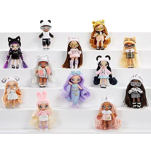 Description - Na! Na! Na! Surprise Minis Odkryj zupełnie nową serię 10-centymetrowych lalek Na! Na! Na! Surprise Mini! Te urocze miniaturki mają ruchome ramiona, biodra i obracającą się głowę z modną, flokowaną czapką. W serii znajdziesz aż 12 znanych postaci w nowej, kompaktowej wersji - idealnej do kolekcjonowania i zabawy! Każda lalka to prawdziwa niespodzianka z konfetti, zapakowana w pudełko z okienkiem, dzięki któremu od razu zobaczysz, kto czeka w środku. Bez baterii. Cena za display zawierający 12 sztuk.