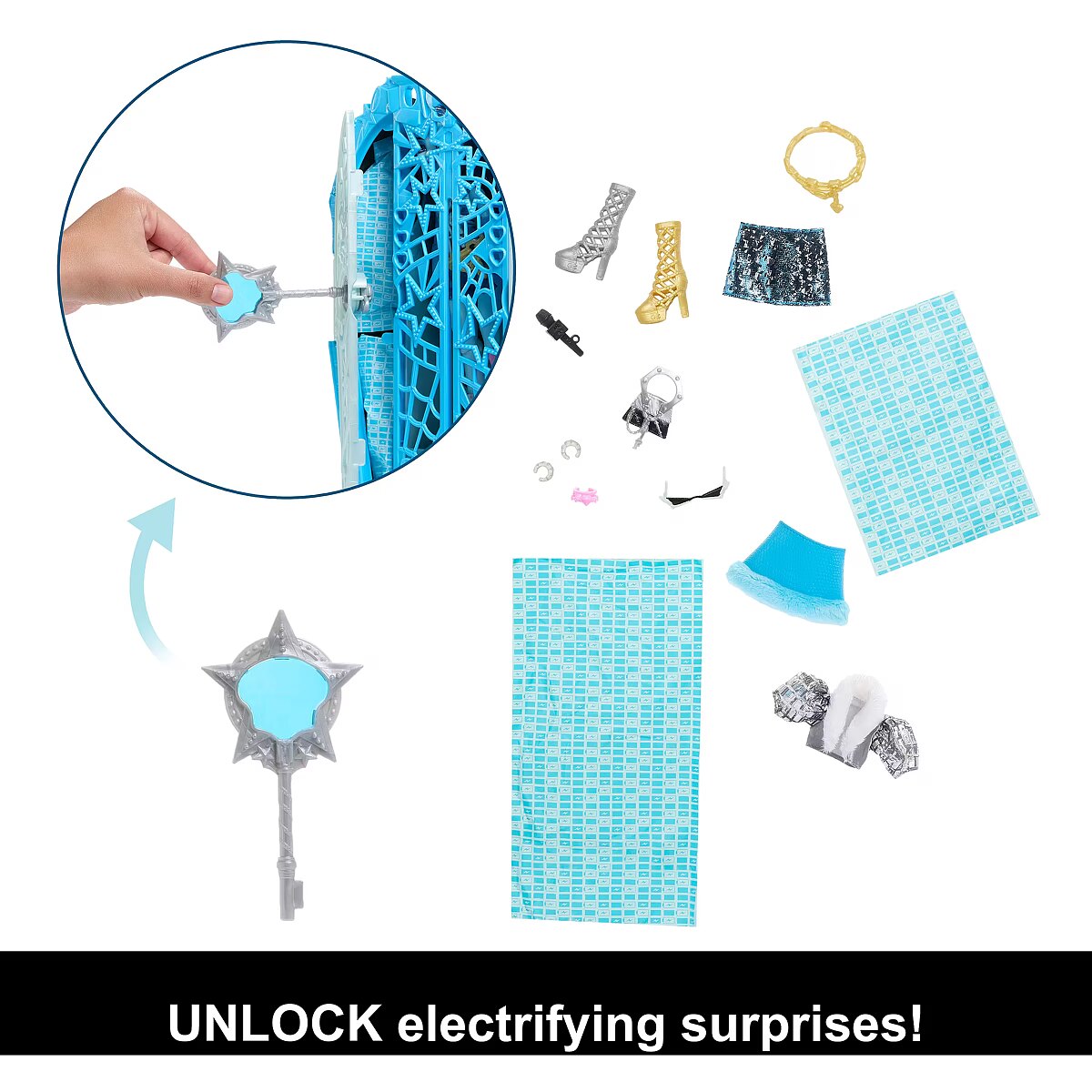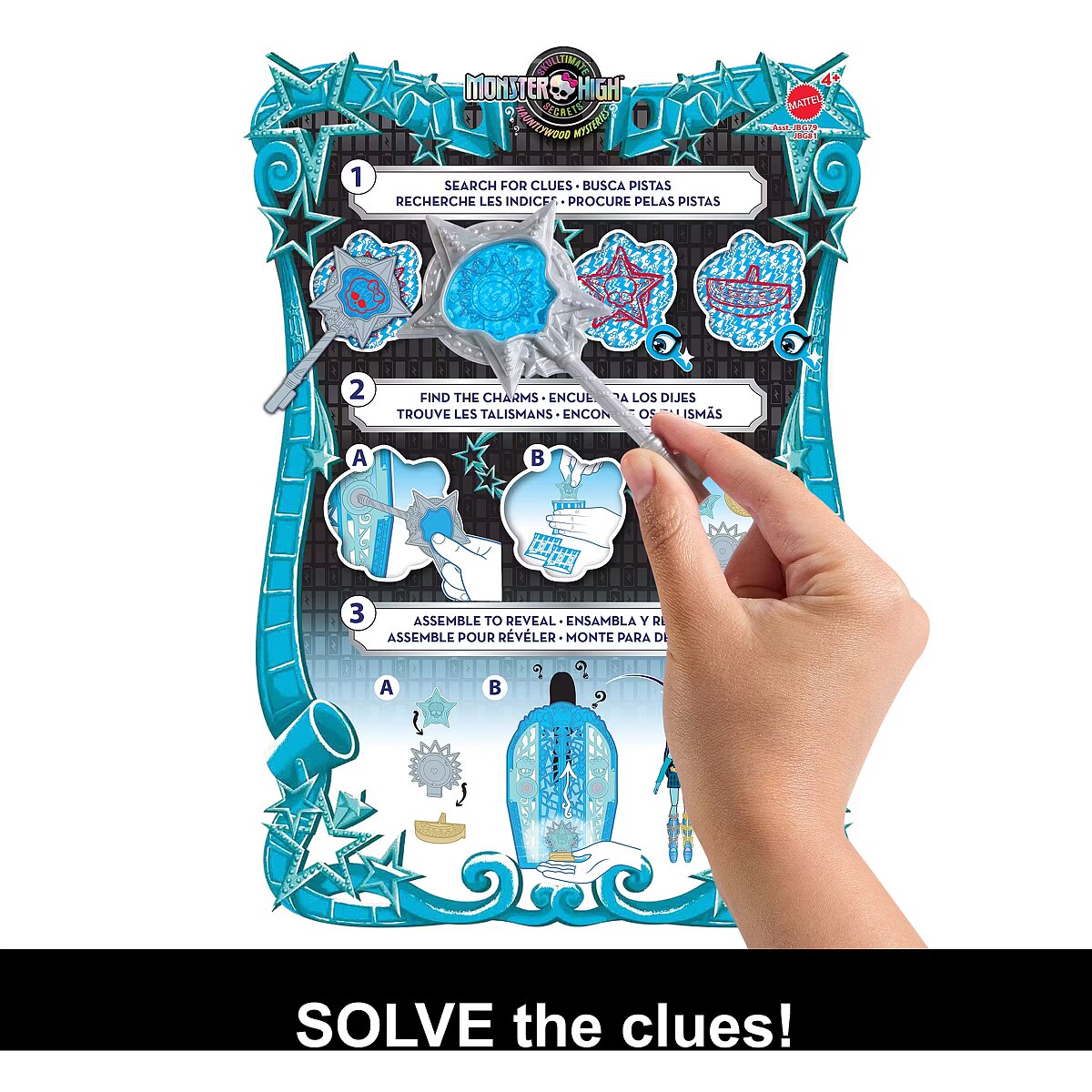 LongDesc - Solve the mystery, unlock the gates of Hauntlywood, and reveal a Monster High doll with Skulltimate Secrets: Hauntlywood Mysteries! Kids can play spooky detective by searching for clues on the map with the 'magic' magnifying glass key. Along the way they'll discover 19+ glam surprises like shimmery outfits, gore-geous elbow gloves, and blinged-out jewelry. Once playtime is over, kids ages 4 years old and up can stow the included doll, clothing, and accessories inside the star-studded closet, which is perfect for both storytelling and storage! Each sold separately, subject to availability. Fully articulated. Dolls cannot stand alone. Colours and decorations may vary.