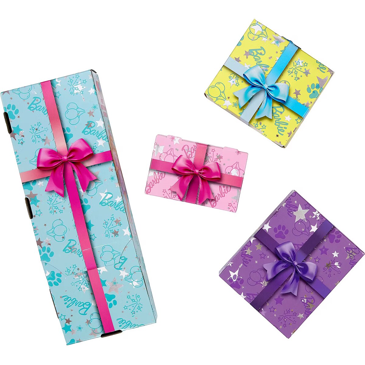 LongSummaryDescription - Barbie Party Unboxed Pet Birthday Series Doll & Accessories, Birthday Bows Set with 10 Surprises. Doll type: Fashion doll, Doll's gender: Female, Recommended age (min): 3 yr(s), Suggested gender: Girl. Height: 138 mm, Weight: 280 g. Material: Fabric, Plastic, Product colour: Multicolour