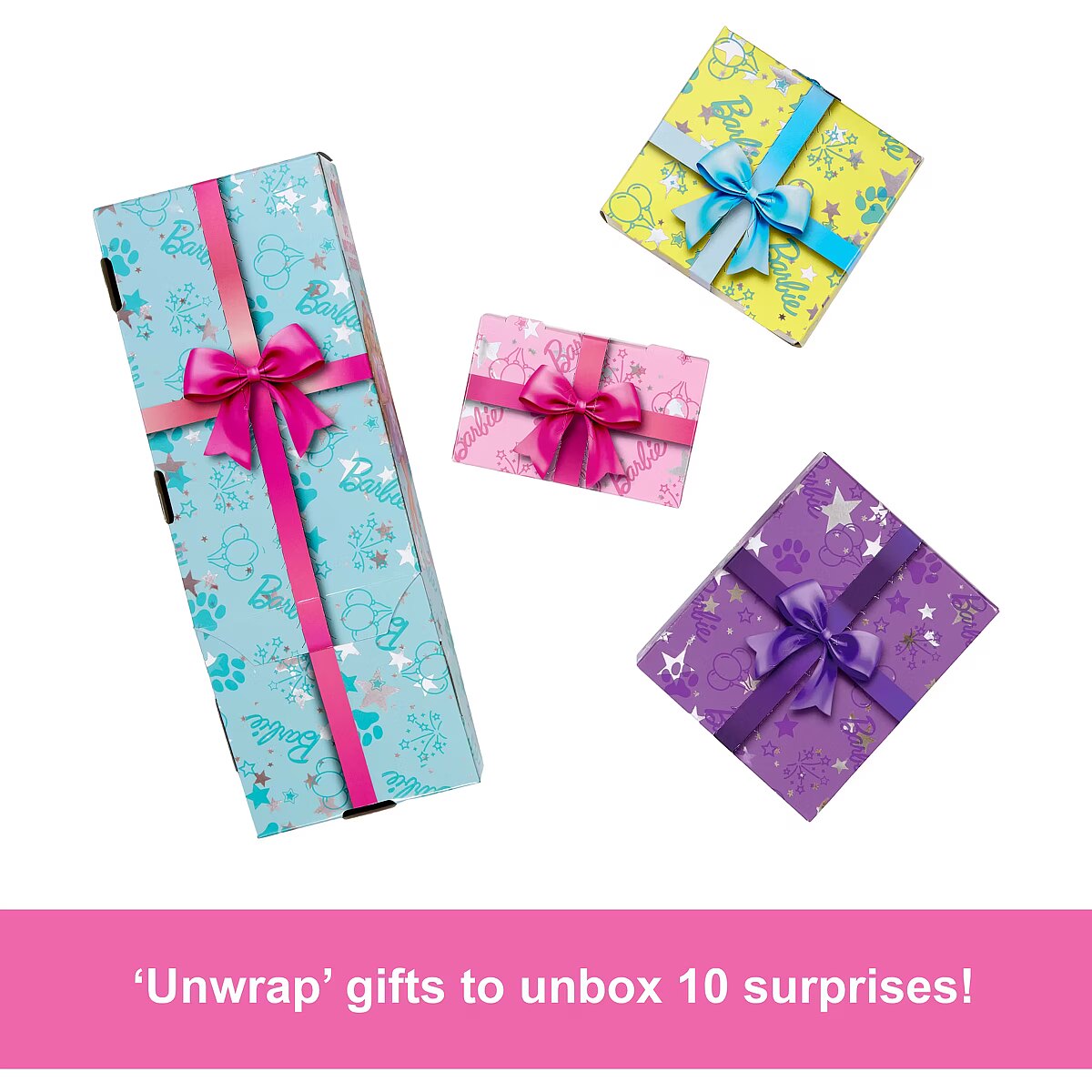 Title - Barbie Party Unboxed Pet Birthday Series Doll & Accessories, Birthday Bows Set with 10 Surprises