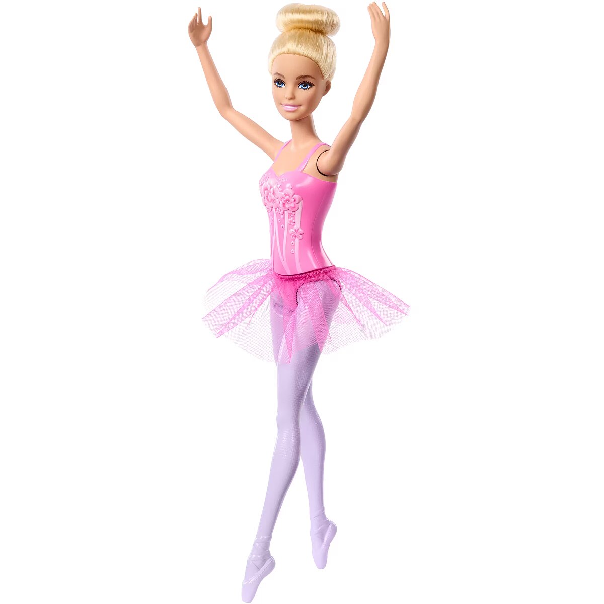 LongDesc - Imaginations take center stage with Barbie ballerina dolls! Wearing a classic look, each beautiful doll features a decorated bodice with 'en pointe' toe shoes and sheer removable tutu. A chic top-knot bun completes the inspiring look. With ballet-posed arms, these dancers are ready for the spotlight! Kids ages 3 years and older can collect them all for a dance troupe. Each sold separately, subject to availability. Dolls cannot stand alone. Colours and decorations may vary.