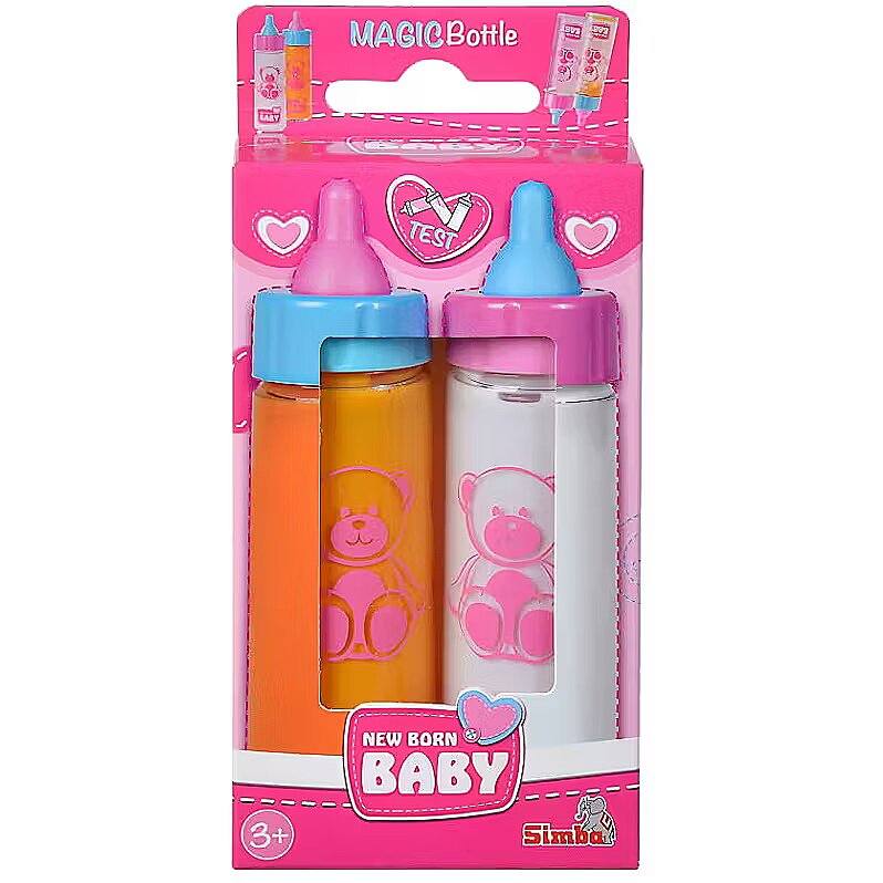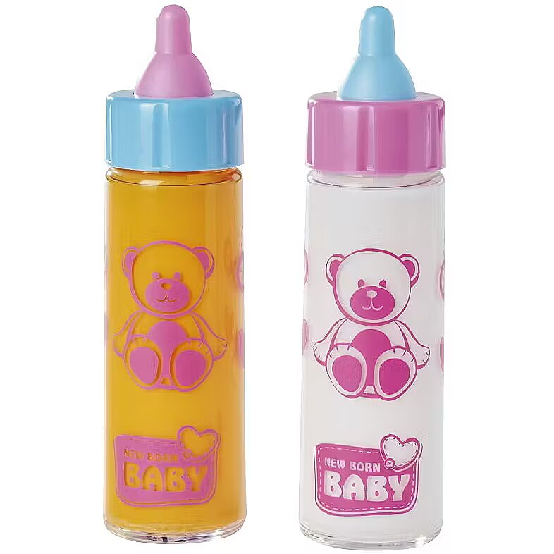 Zestaw 2 butelek ze znikającą zawartością - 1 z mlekiem i 1 z sokiem. Wymiary: 12 cm.