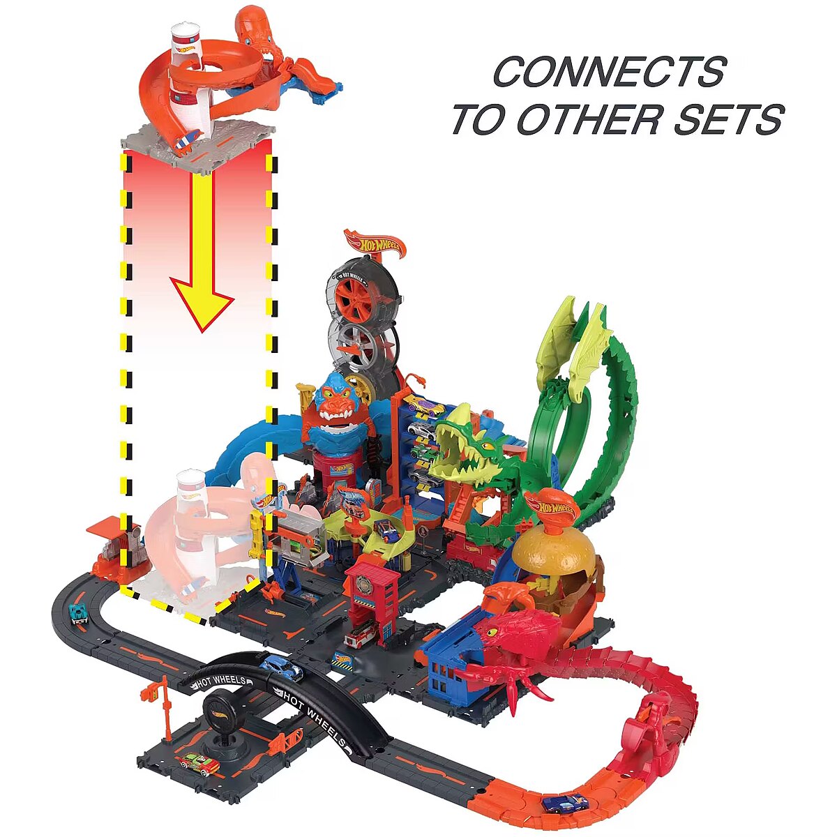 LongDesc - Fierce creatures have invaded familiar landmarks in Hot Wheels City creating exciting obstacles and epic adventures for kids to experience with their Hot Wheels vehicles. These sets connect to each other and to other sets so that kids can build out their own unique cityscape full of challenges and nemesis obstacles that inspire creative storytelling through push-around play they'll want to collect them all (each sold separately). Includes one Hot Wheels car making it a great gift for any occasion. Colours and decorations may vary.