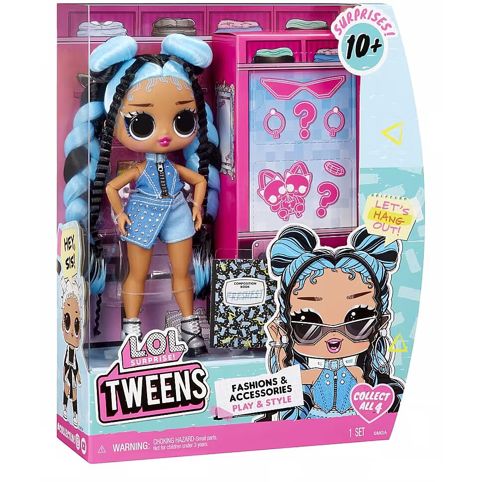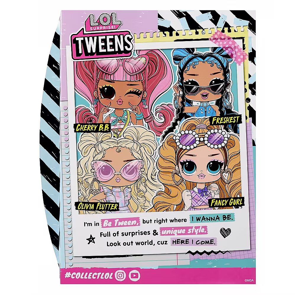 LongDesc - I’m in Be Tween, but right where I wanna be. Full of surprises & bold style. Look out world, cuz here I come. Introducing the newest L.O.L. Surprise! Core Tweens fashion dolls! These fan-favorite charming Tweens are being released in all new looks including different hairstyles and fashions! Discover what’s inside and get ready to unbox a gorgeous Tweens fashion doll with beautiful surprises including unique fashions, cute accessories, stylish shoes, and more! Collect all 4 BFFs!