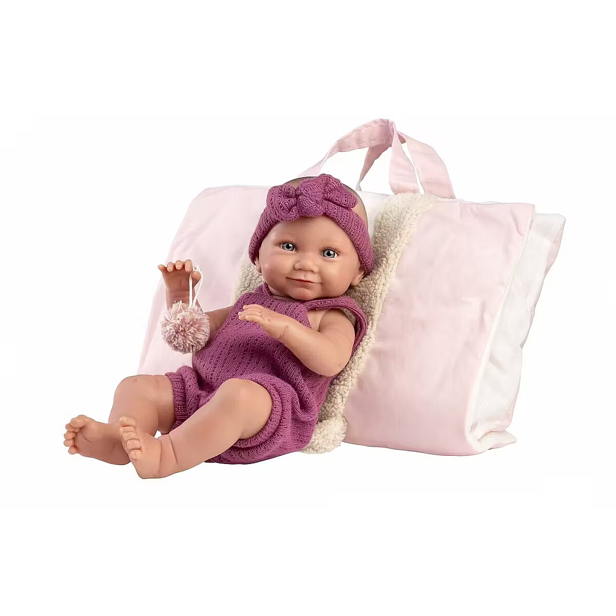 Description - Llorens 73812 Vinyl Baby Doll 40 cm - Nica in Pink Sleeping Bag/Baby Carrier The handmade production of Llorens dolls ensures they are crafted with meticulous attention to detail. Delicately highlighted features, shading, beautiful eyelashes, and eyes. Made from the highest quality materials. Each doll gains color and life in the hands of the maker. Their outfits are made from organic cotton, wool, and recycled materials. This makes it the perfect gift for your child, serving both educational and playful purposes. Hand made in Spain with love. Name: Nica Height: 40 cm Material: Vinyl Includes: Three-piece outfit, baby carrier Features: Can move arms, legs, and head