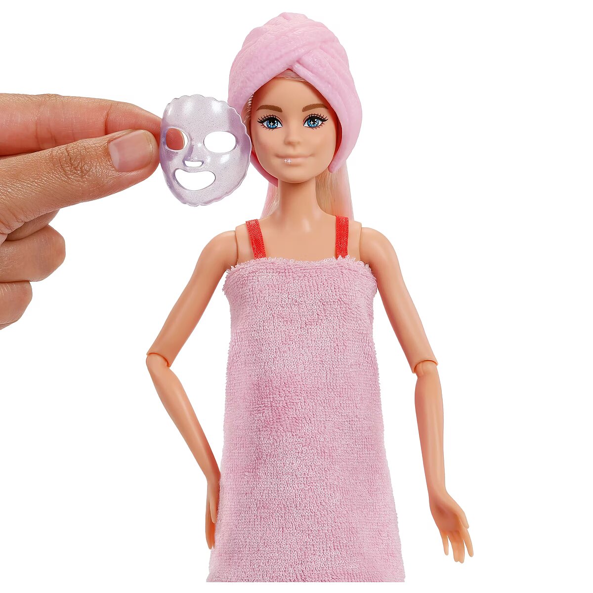 Packaging content - Packaging content - ​Includes Barbie fashion doll with 2 colour-change features wearing 1 reversible towel, 1 hair towel, and 1 face mask, plus 1 beauty compact with 1 necklace, 1 purse, 1 pair of earrings, 1 pair of shoes, 1 dress bow, 1 mini makeup palette, 1 tube with jelly Slime, and 1 pet.