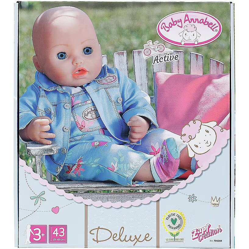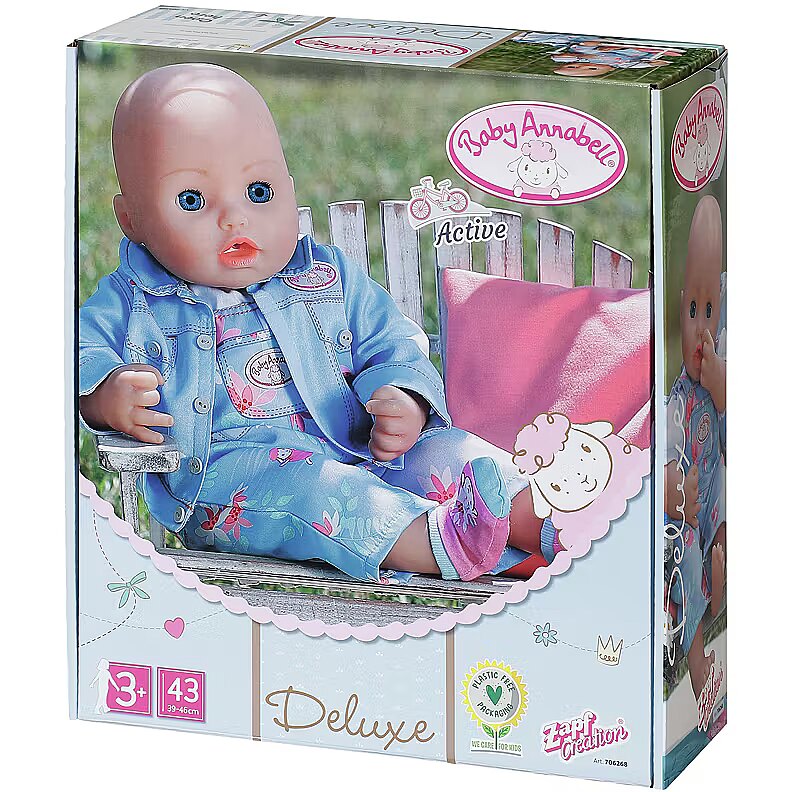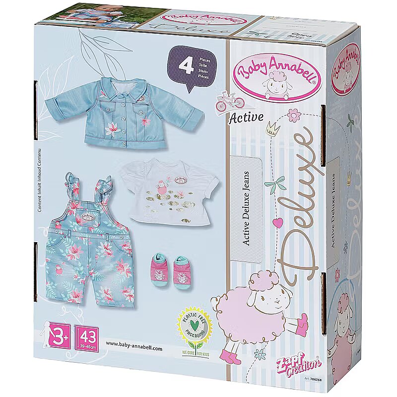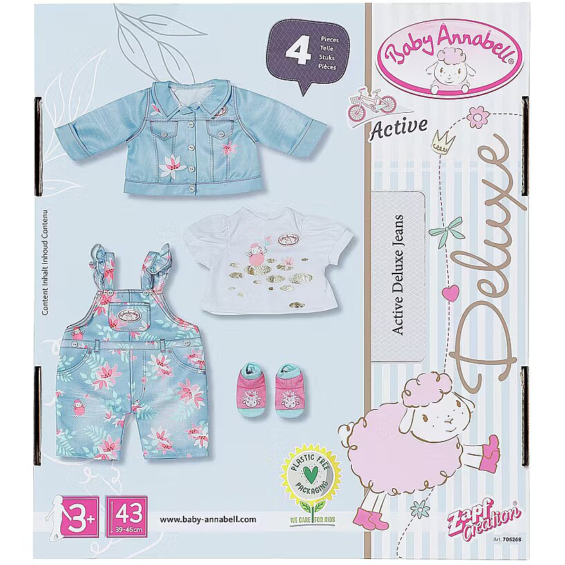 LongSummaryDescription - Baby Annabell Active Deluxe Jeans. Product type: Doll clothes set, Recommended age (min): 3 yr(s), Foldable. Weight: 400 g