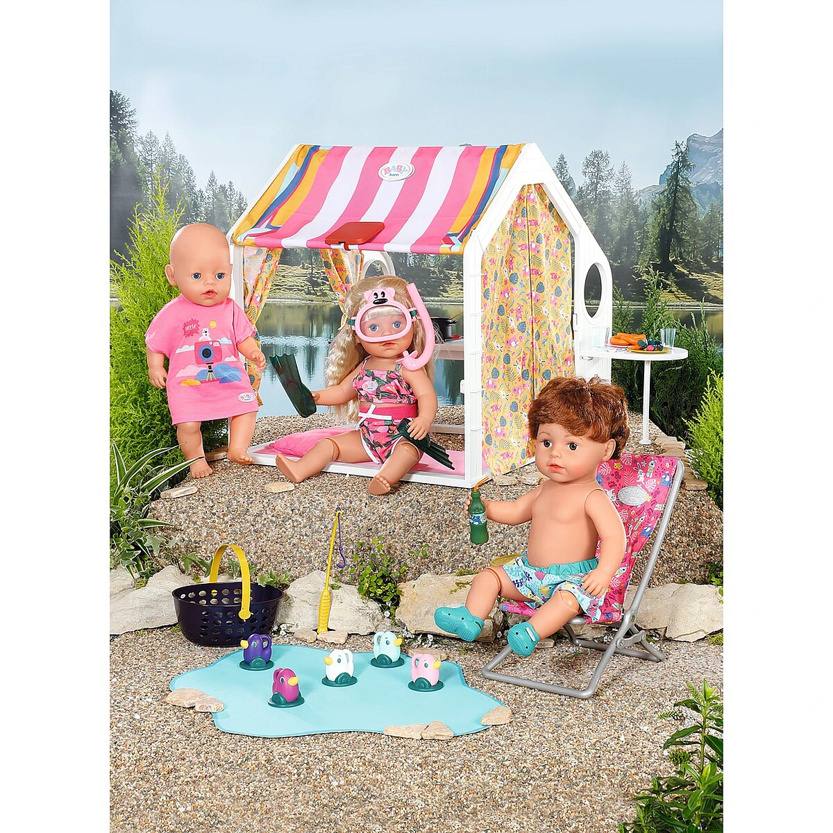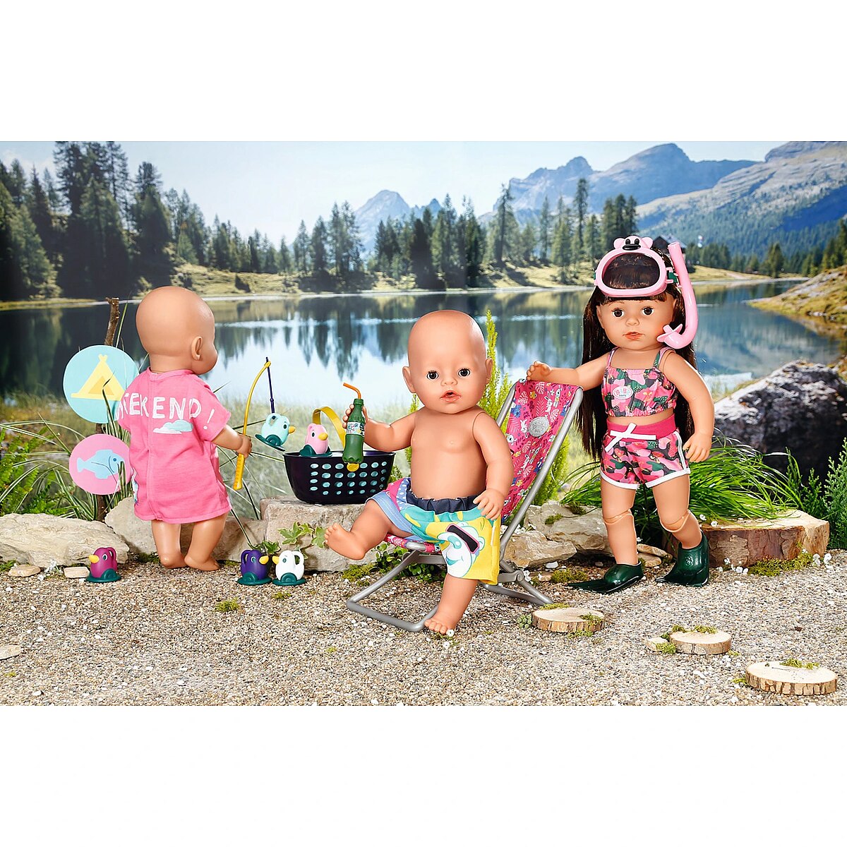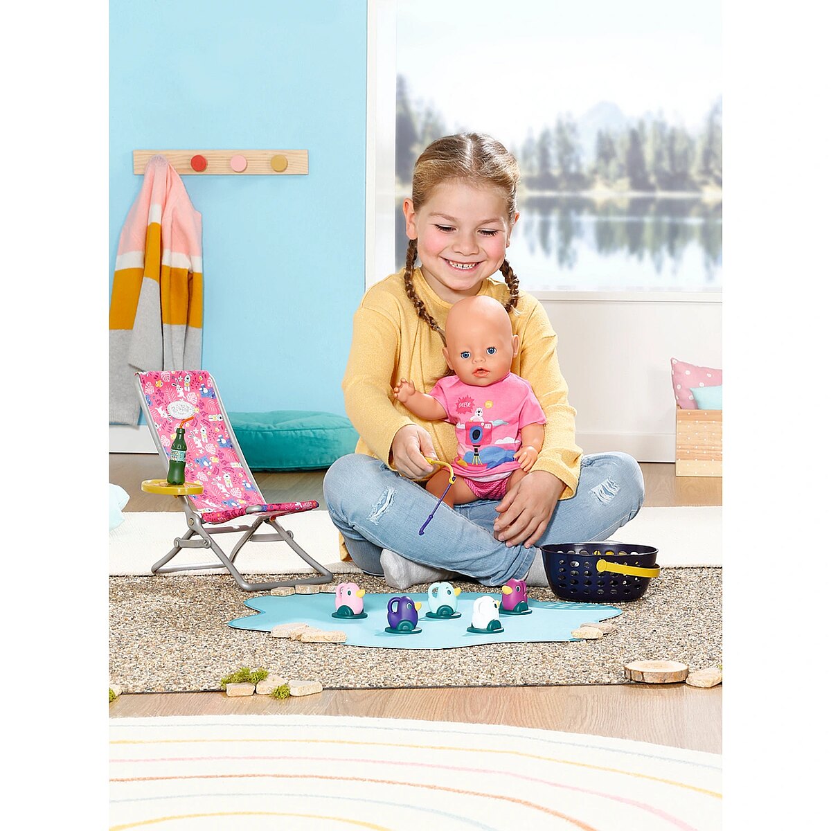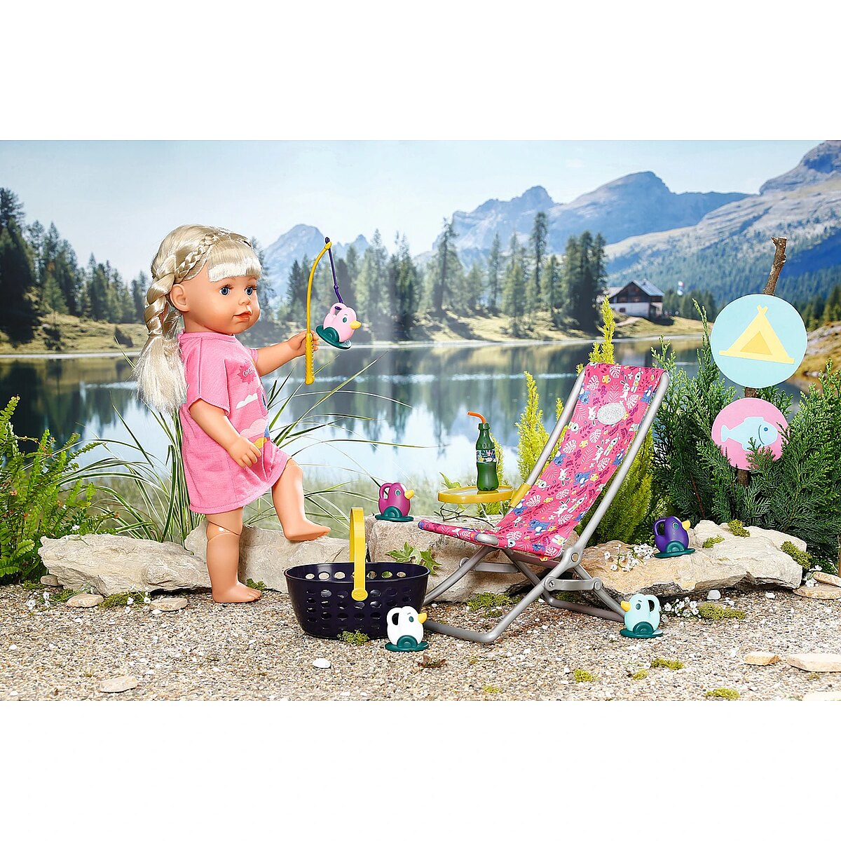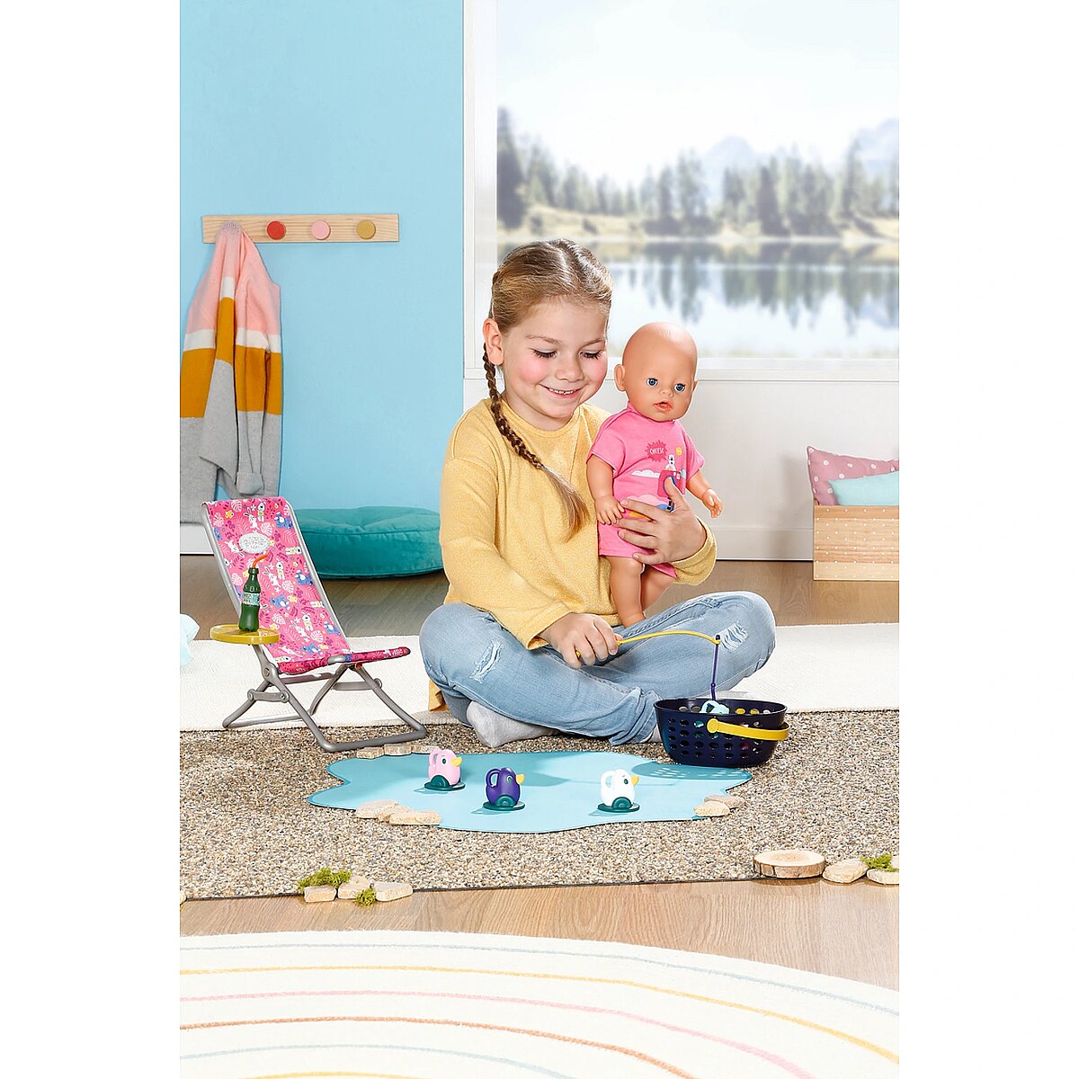 Zapf Creation BABY born Weekend Fishing, doll accessories (dress, deck chair with table, soda bottle, basket, 5 ducks and rod)