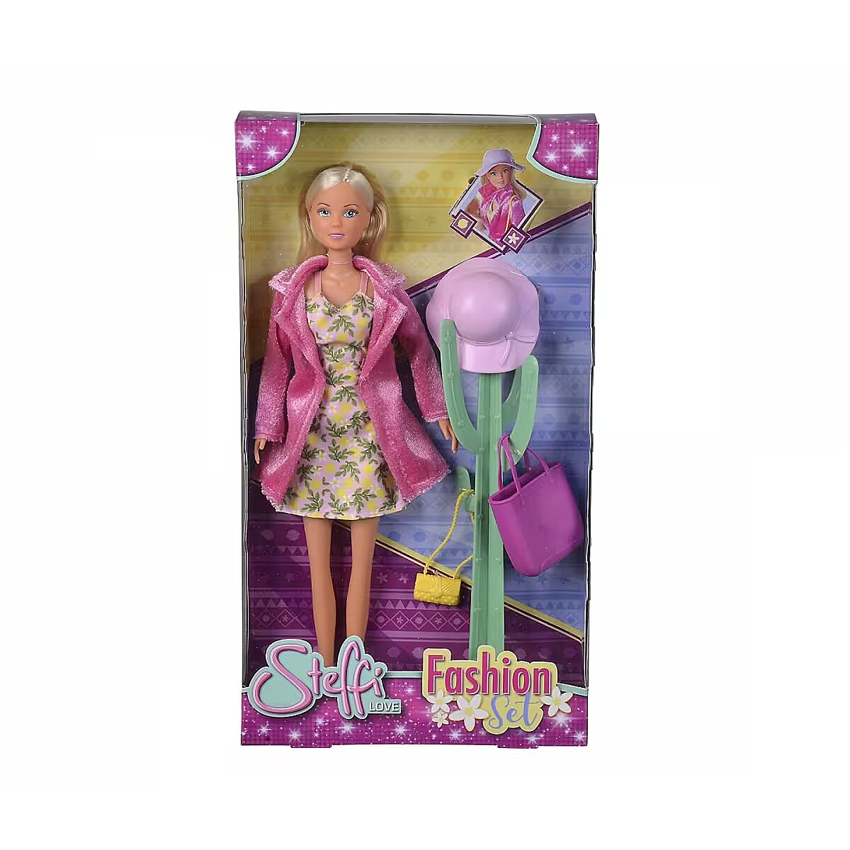 Description - Steffi Love Steffi fashion set Steffi is wearing a pink dress with a floral pattern and has paired it with a soft pink coat. In addition to Steffi, the set also includes a cactus-shaped clothing stand to hold all items such as a shopper, hat, handbag or coat. Steffi Love the joy of playing dress-up: she is a real fashion doll. She loves clothes and fashionable hairstyles. You can dress her according to current trends and give her a unique character. Avant-garde styling: Steffi is wearing a summer dress with a fancy floral pattern. A beautiful fleece coat and an elegant hat with a brim add to the flair and appeal to any discerning fashionista. Cactus-shaped coat stand: the set includes an interesting stand on which you can hang your coat, hat or the attached 2 handbags. The courage to express yourself: the cactus set presents an unobvious combination of an airy dress with sneakers. The Steffi Love fashion sets give little fashionistas the chance to express themselves through exciting play full of fashionable styles. Steffi is 29 cm tall and is suitable for children aged 3 years and over. The Steffi doll fashion set with cactus-shaped stand is perfect for girls who love fashionable clothes and unusual accessories and are ambitious to explore new areas of fashion. The set includes a unique cactus-shaped clothes rack to hang hats, coats and handbags. It invites you to take a bold approach to playing with fashion to be unique in your own way. Steffi Love sets created to foster imagination and creative initiative. Steffi Love is an iconic German brand with 30 years of tradition, which offers a variety of styles and different variations of sets that enable children to choose a doll according to their interests and dream professions, and develop invaluable independence in the child.